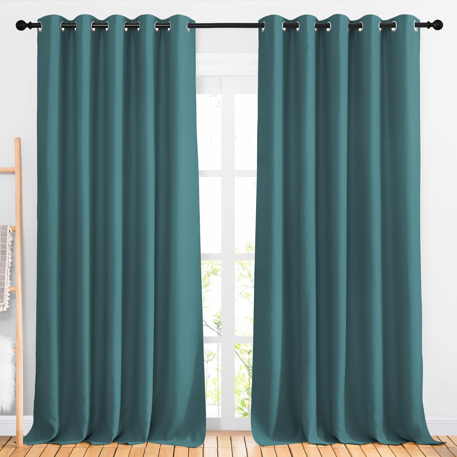 NICETOWN Blackout Sea Teal Curtains for Sliding Glass Door, Grommet Window Treatment Thermal Curtains Room Dividers for Living Room/Bedroom, 2 Panels, W66 x L102