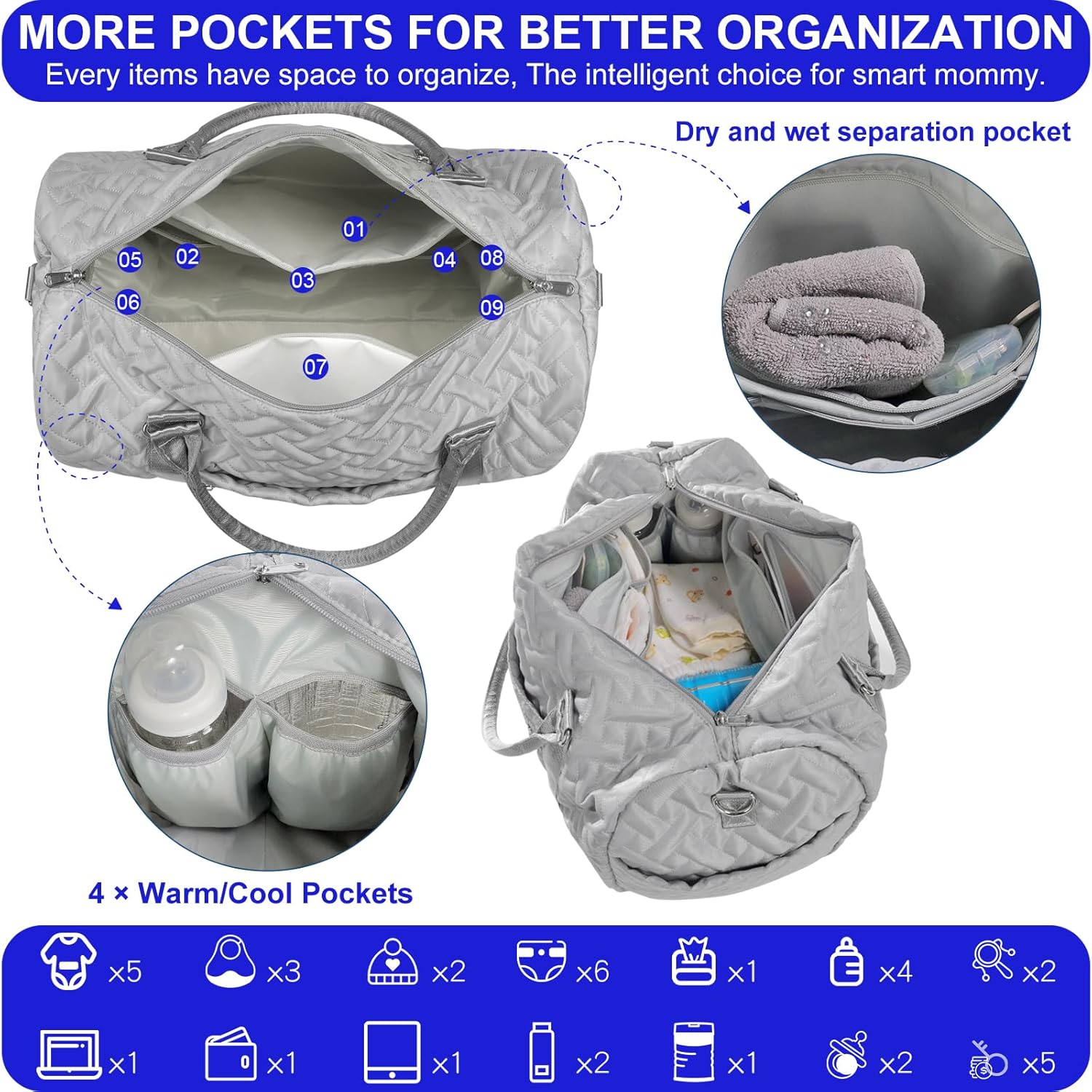 Diaper Bag Tote: Mommy Bag, Baby Bag for Boy and Girl, Mom Hospital Bag, Twins or 2 Kids Diapers Bag