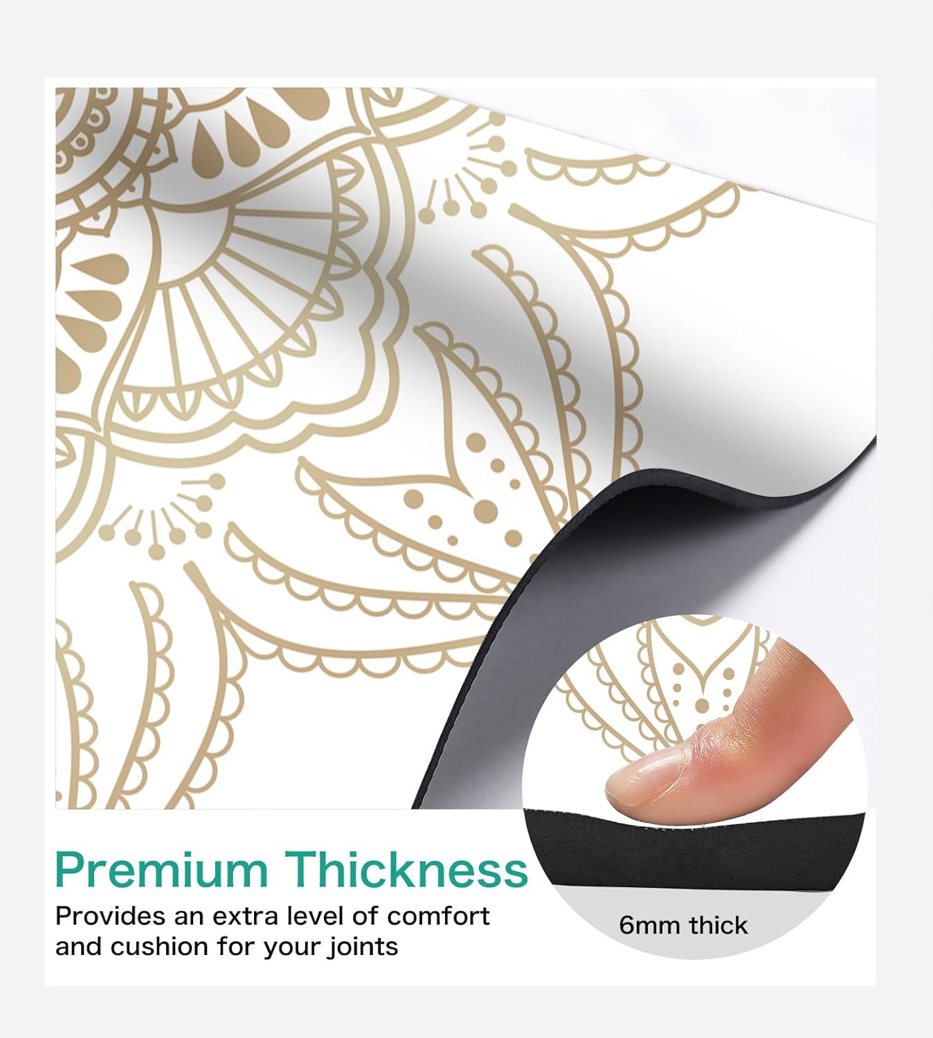 - Standard Size: 72"(183cm) x 24" (61cm); offers adequate space to fit any type of exercise like yoga, pilates, bikram, and fitness exercise. the 6mm extra thick, high density provides excellent cushioning and soft. All our mats come with a free carry bag for easy transport from home to yoga class