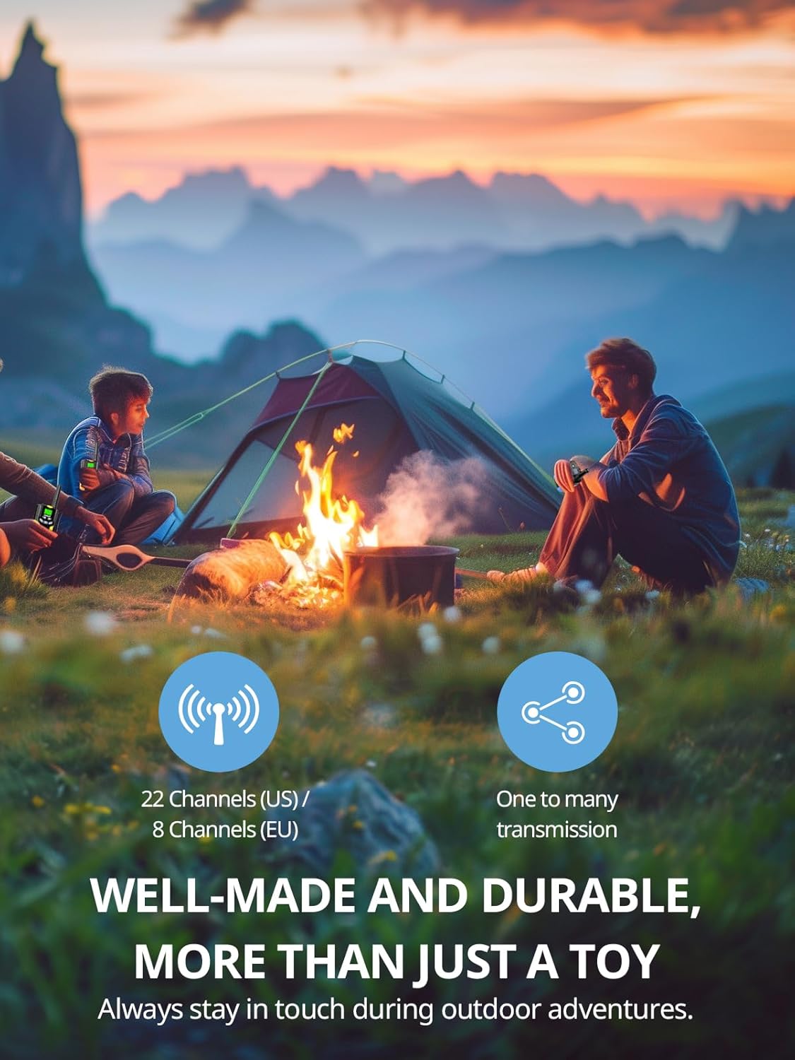- For safe and private communication, the walkie talkies include 22 channels and 99 sub-codes using CTCSS and DCS technology. This keeps your child’s conversations secure and free from interference. No strangers, no unwanted chatter, just safe and clear communication every time.