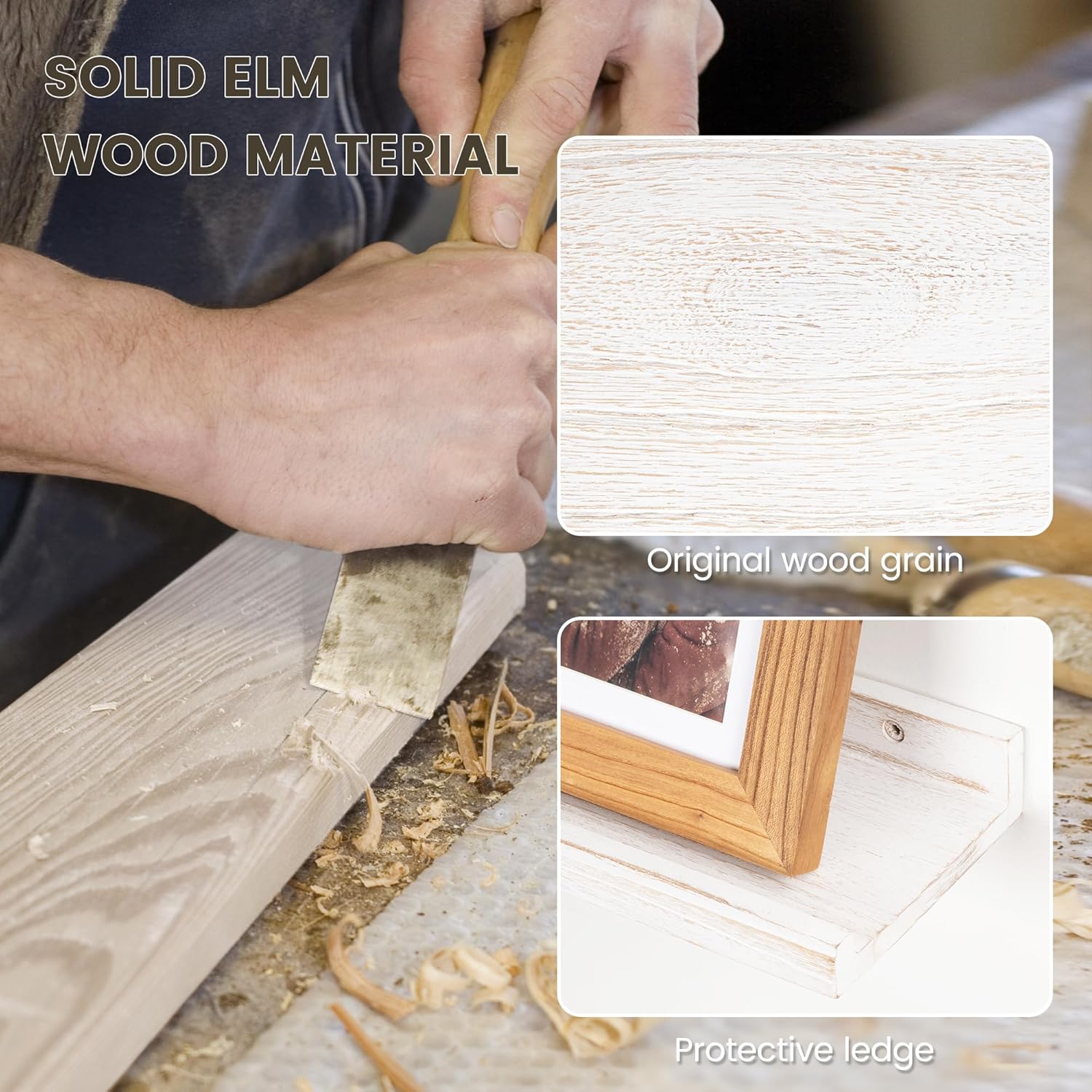 - 【100% Solid Elm Wood Shelves】Employing reclaimed elm wood renowned for its glamorous texture, we meticulously select pieces showcasing beautiful wood knots and distinctive grain patterns, enriching the character of your living space. Our hand-crafted wood shelf feature a rustic natural finish, ensuring durability for lasting appeal. Each shelf is distinct in grain, color, finish, and texture, adding a touch of uniqueness to your decor.