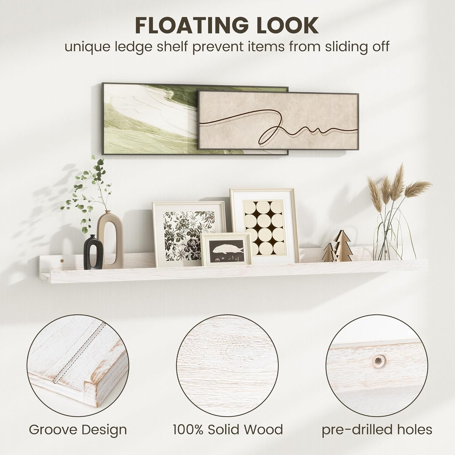 - 【Seamless Installation】Our Picture Ledge Shelves set is designed for easy and simple installation. The package includes all the necessary hardware to get your wood floating shelves up on the wall in no time. Follow the instructions provided, and your wall shelf will be ready to use within minutes.