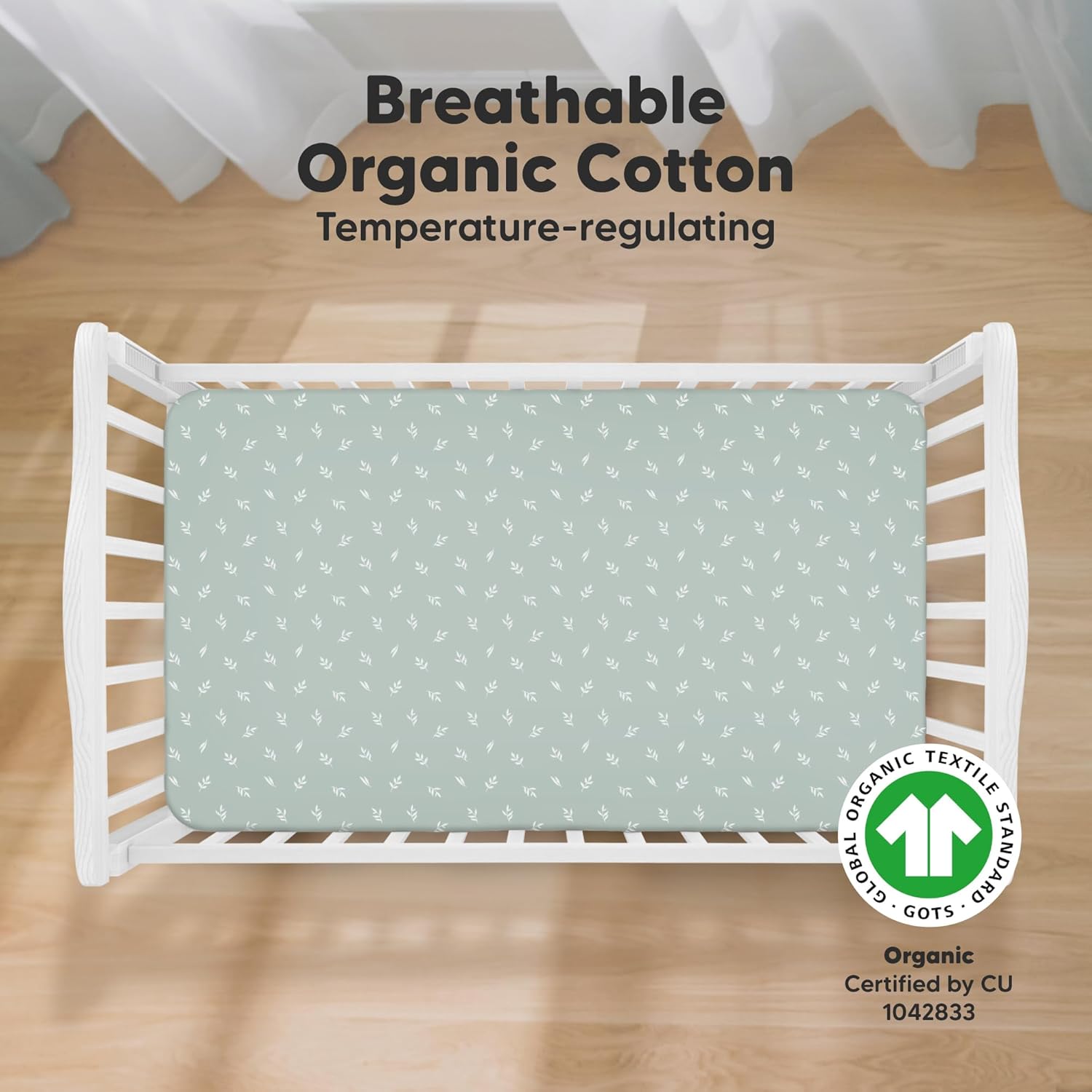 - High Quality Elastic Band - Our organic cotton crib sheets, use premium elastic SnugFit Band seamlessly concealed to ensure these standard crib sheets stay in place securely for safe and soothing sleep.