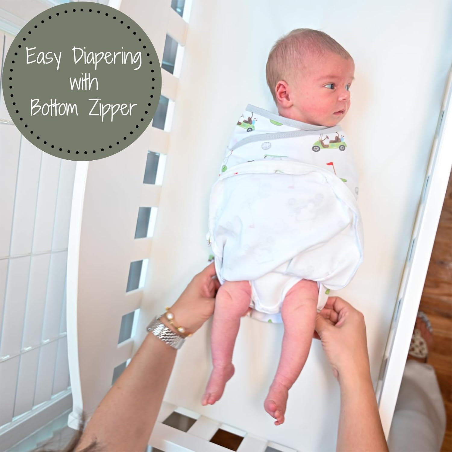 LollyBanks Baby Swaddles, 100% Organic Cotton Swaddles for Newborns Boys and Girls, 0-3 Months Swaddle Sacks with Easy Change Zipper, Swaddle Neutral Baby Registry (Golf Print)