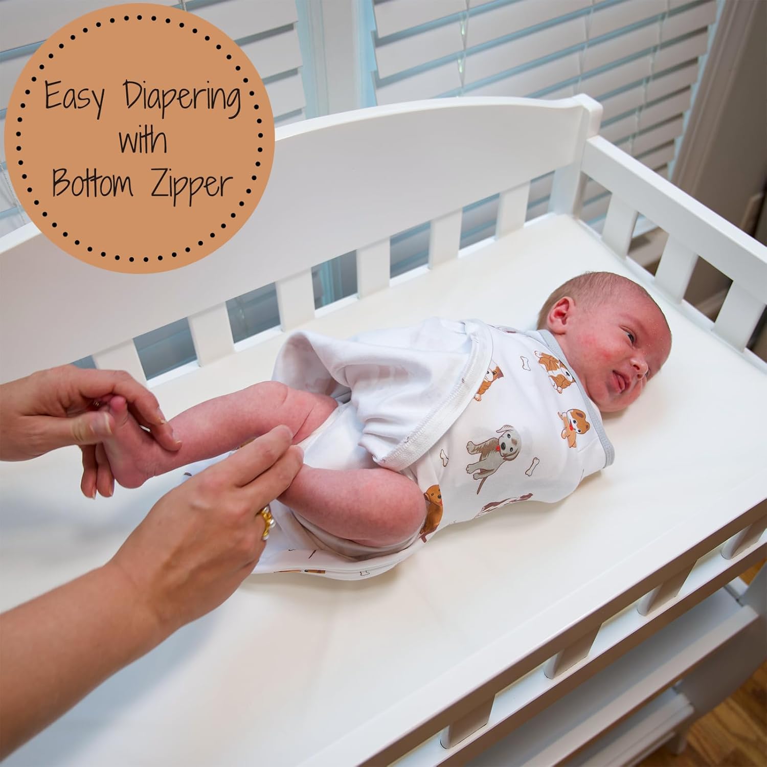 - The easy change zipper at the bottom ensures swift and silent diaper changes.