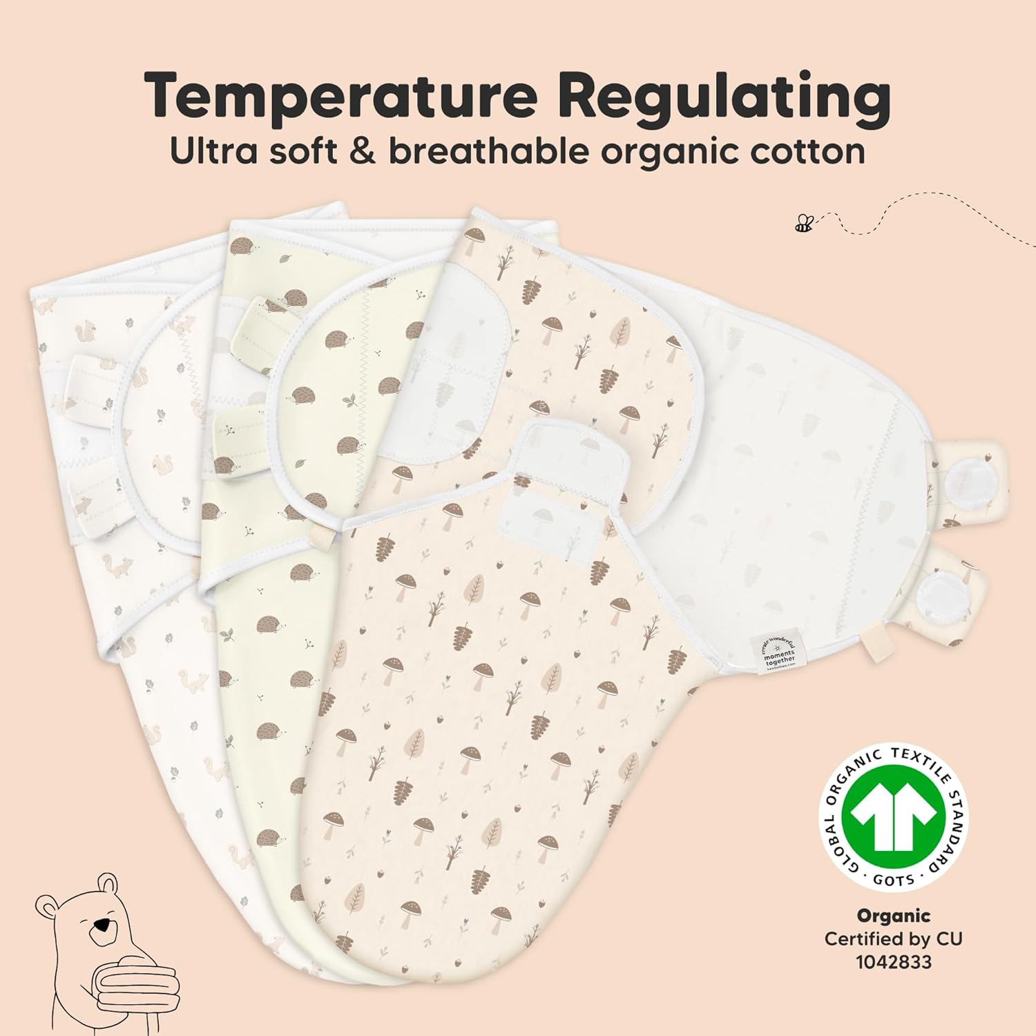 KeaBabies 3-Pack Organic Baby Swaddle Sleep Sacks - Swaddles for Newborns, Infant 0-3 Months, Baby Girls, Boys, Soft & Snug Newborn Sleep Sack, Nursery Swaddling Blankets (Nibbles/Bruce)