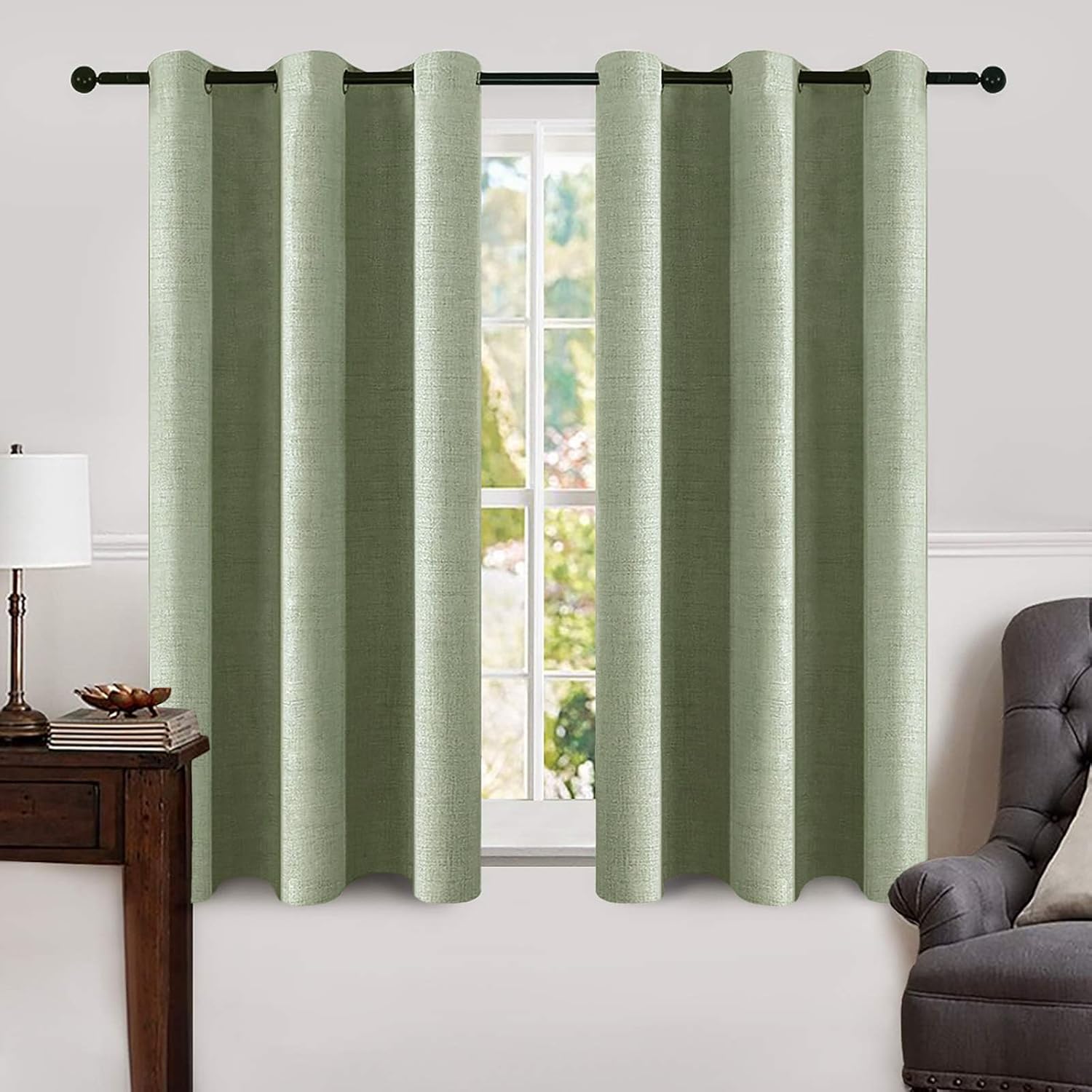 MIULEE Linen Blackout Curtains and Drapes 100% Room Darken Thermal Insulated Grommet Window Panels with Coating 2 PCs W 42 x L 63 inches Sage Green