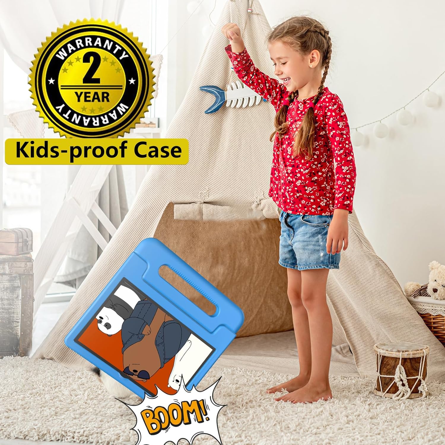 - Vibrant 10 Inch IPS Display: The 10.1" 1280 x 800 HD display features low blue light technology and an IPS 180° viewing angle, delivers crisp visuals, ensuring kids can enjoy interactive learning, games, and videos on this tablet.
