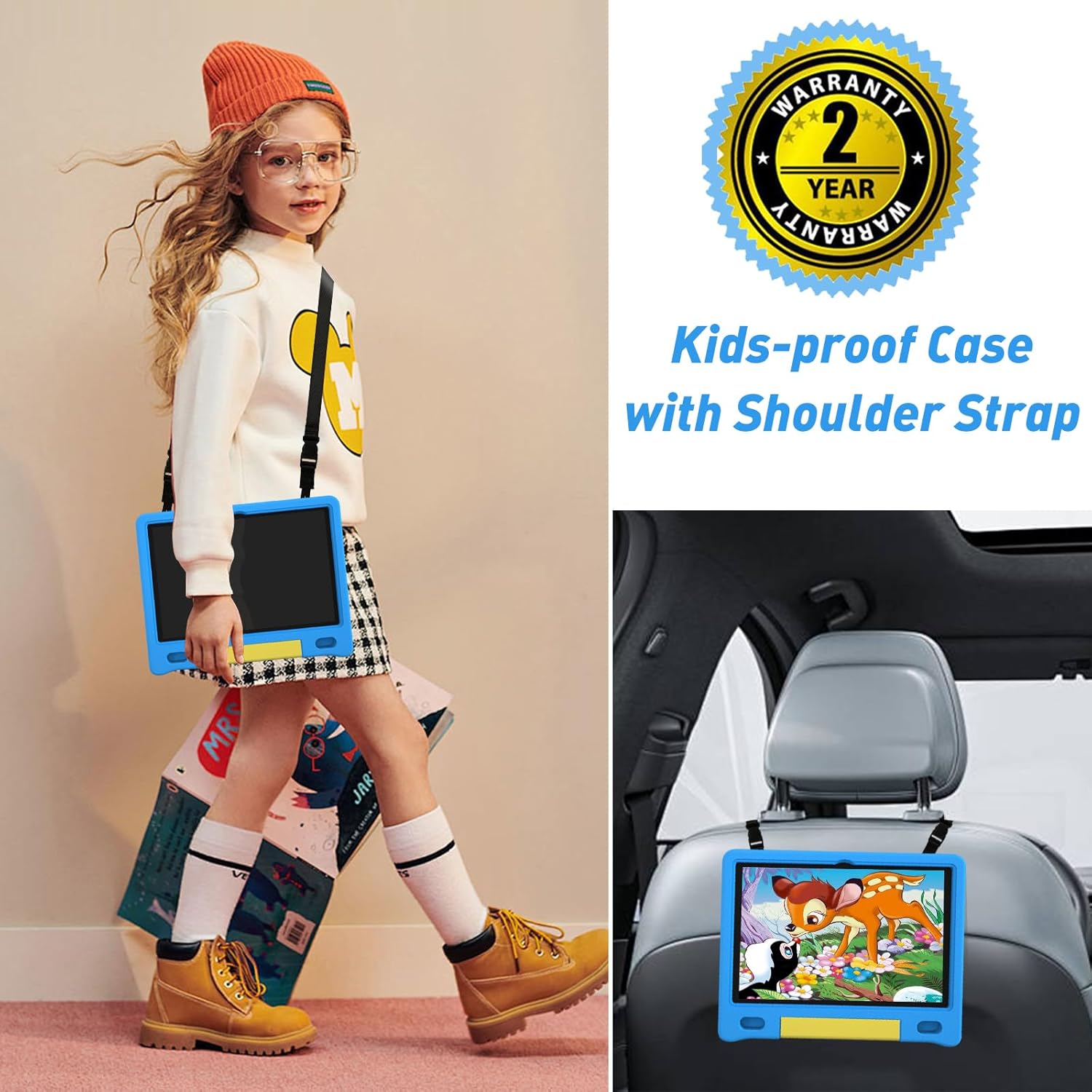 - LONG-LASTING BATTERY LIFE: The kids tablet with case included features a 6000mAh battery, offering up to 12 hours of uninterrupted fun. Perfect for travel and long car rides, keeping your child entertained all day.