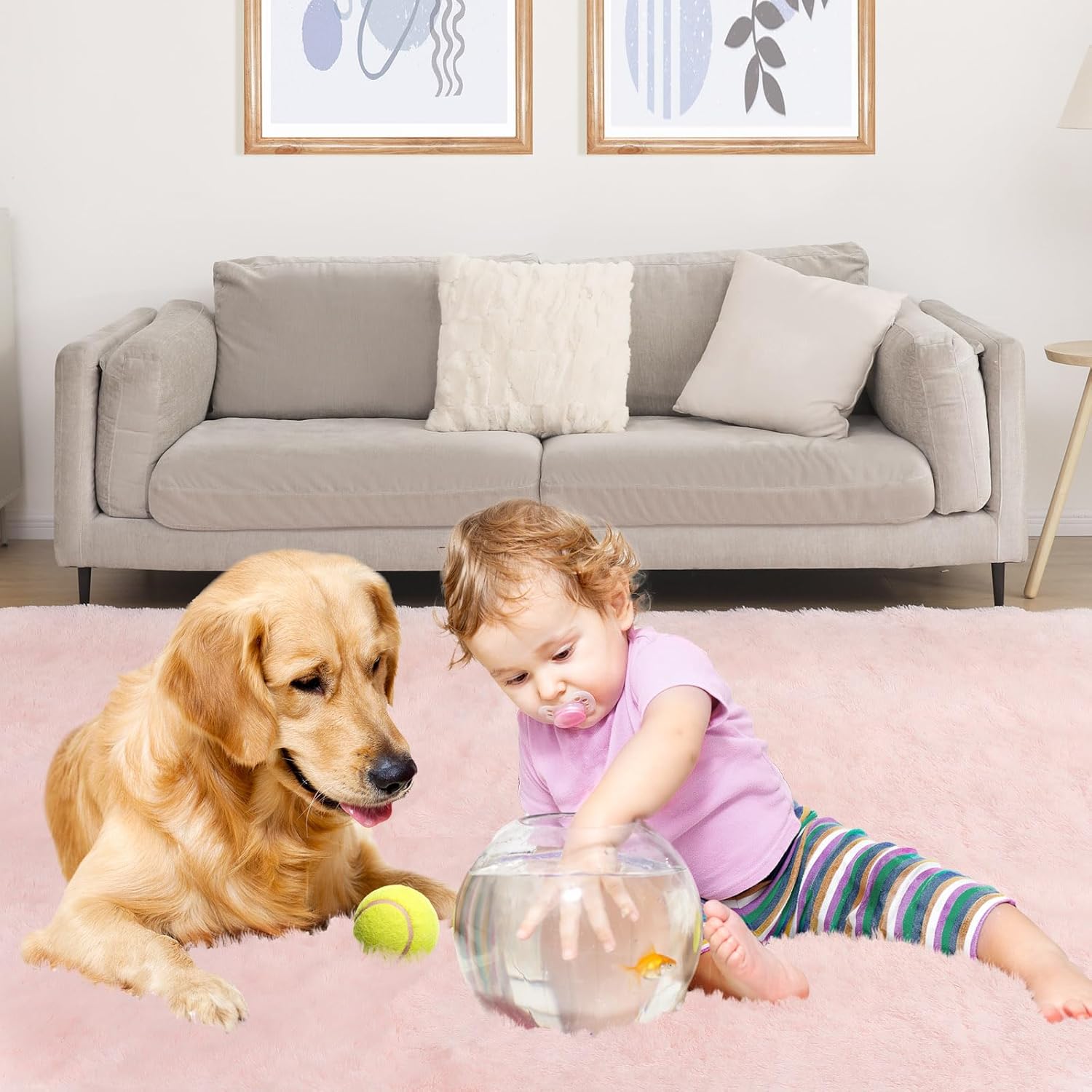 Soft 5x7 Pink Rug, Fluffy Area Rugs for Living Room, Plush Area Rugs for Bedroom, Non-Slip Indoor Carpet for Nursery, Study Room, Kids Room, Room Decor