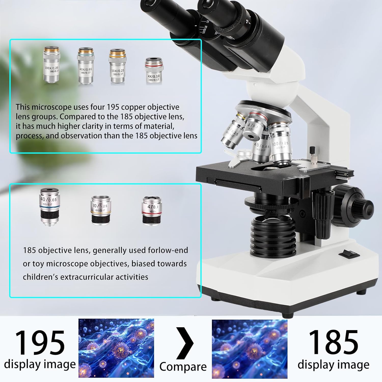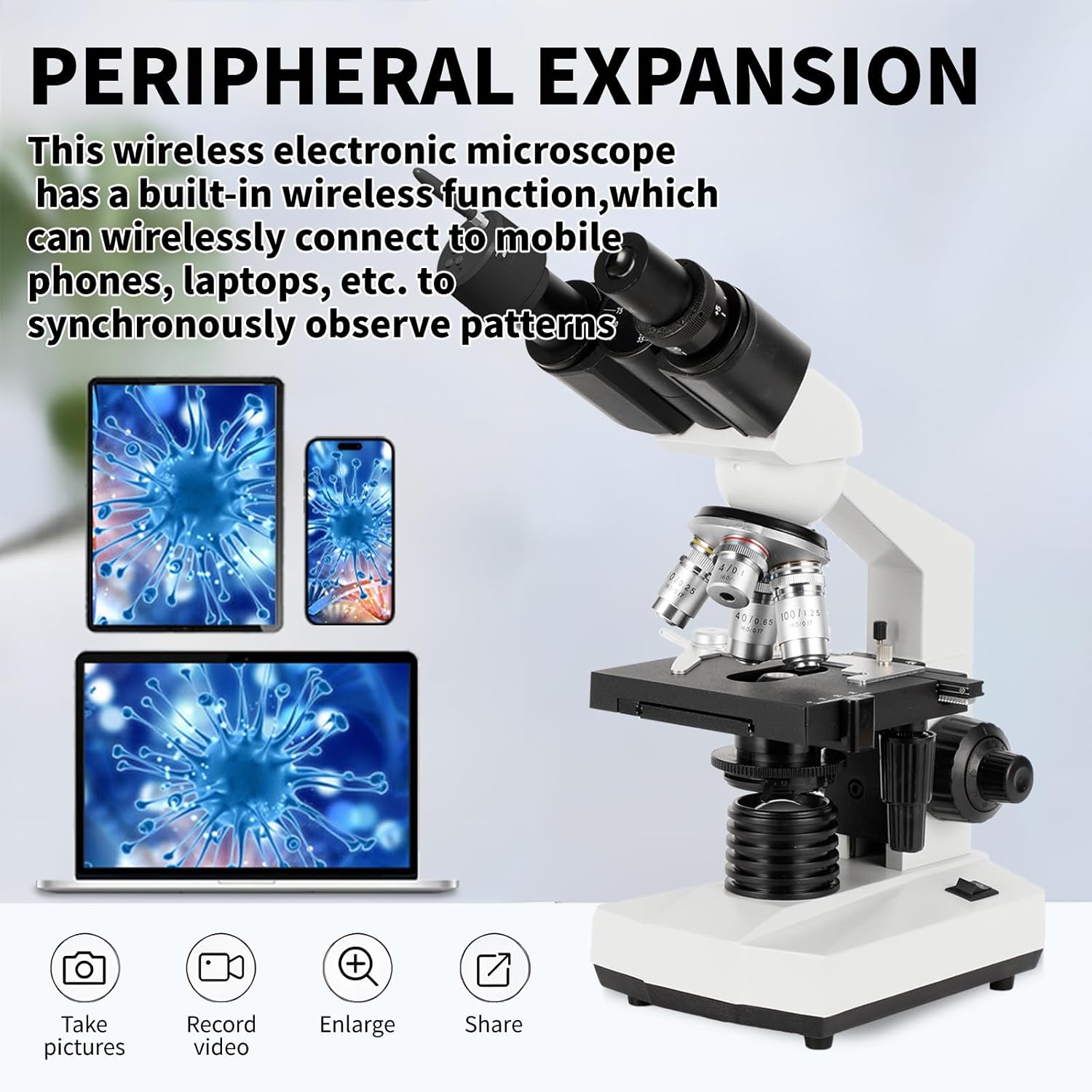 Binocular Compound Microscope, 40X-5000X Magnification, Wide-Angle Eyepiece WF10X WF25X, LED Light Source, XY axis Double-Layer Stage, Adult Microscope (Supports WiFi Wireless Connection)