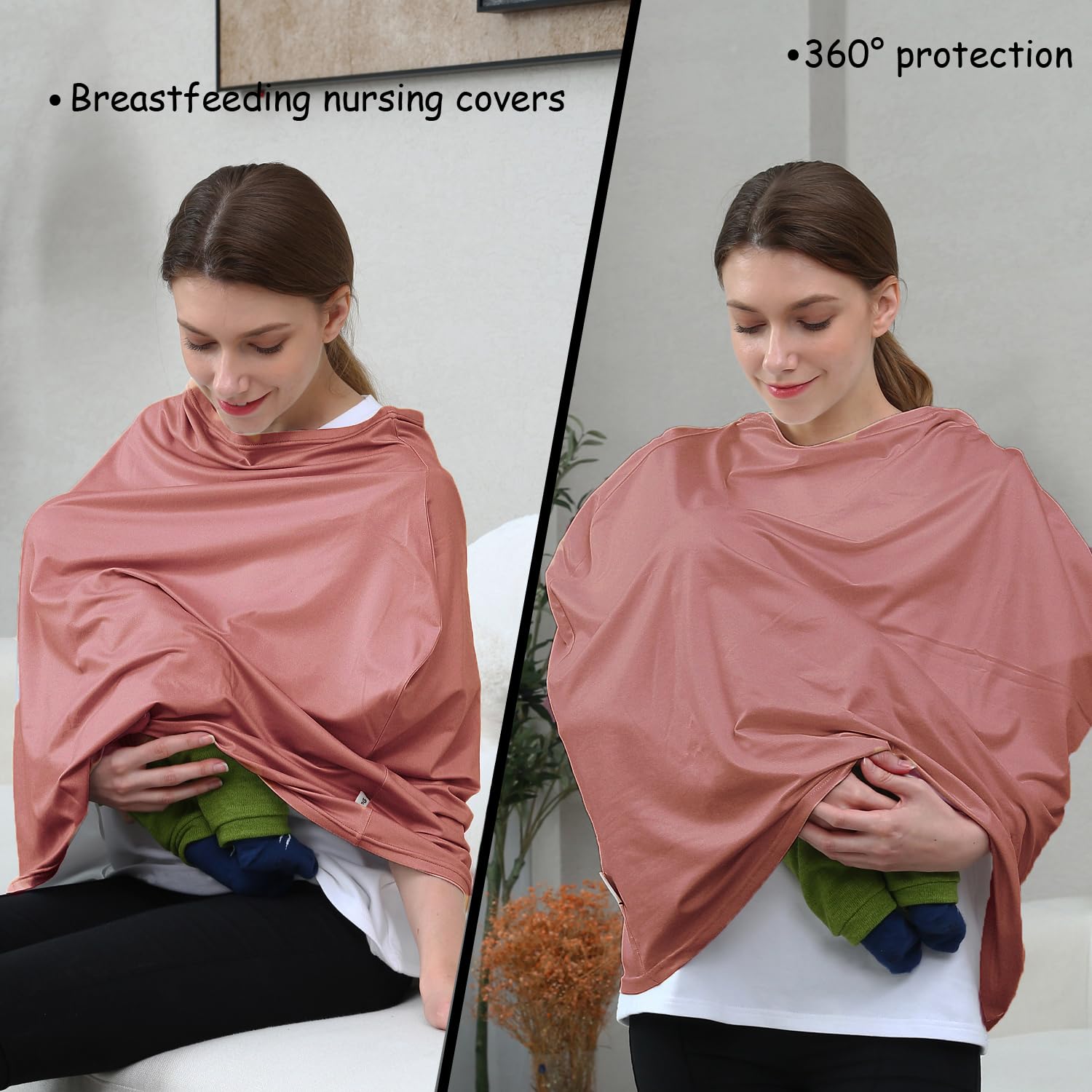 Car Seat Cover Baby for Nursing, Baby Breastfeeding Cover Carseat Canopy Covers, Solid Color Multi-use Nursing Cover for Babies (Bronze red)