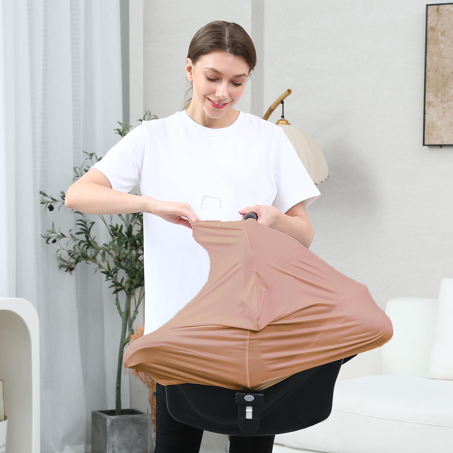 Car Seat Cover Baby for Nursing, Baby Breastfeeding Cover Carseat Canopy Covers, Solid Color Multi-use Nursing Cover for Babies (Wheat)