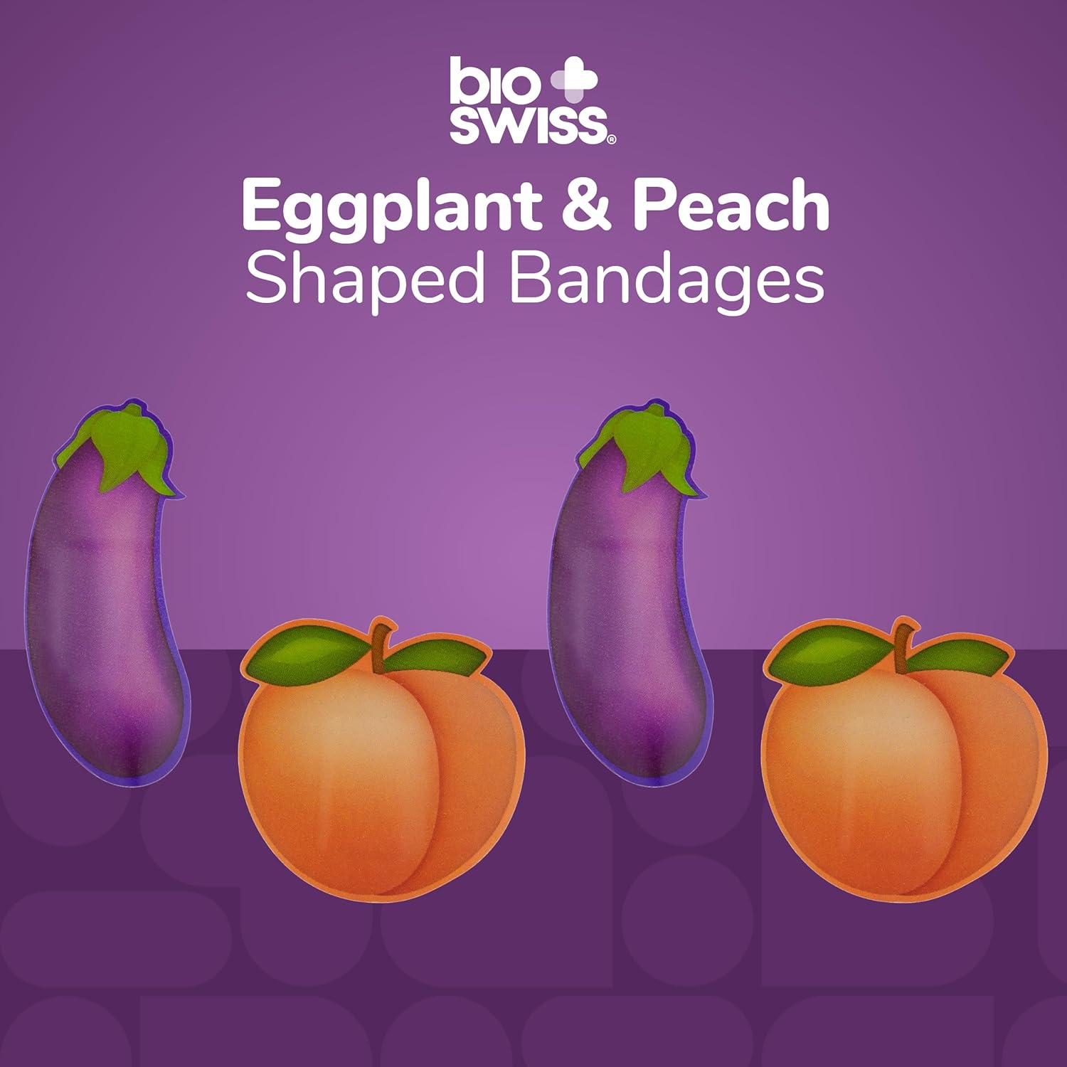 BioSwiss Bandages, Eggplant and Peach Shaped Adult Self Adhesive Bandage, Latex Free Sterile Wound Care, Funny First Aid Kit Supplies for Adults, 24 Count
