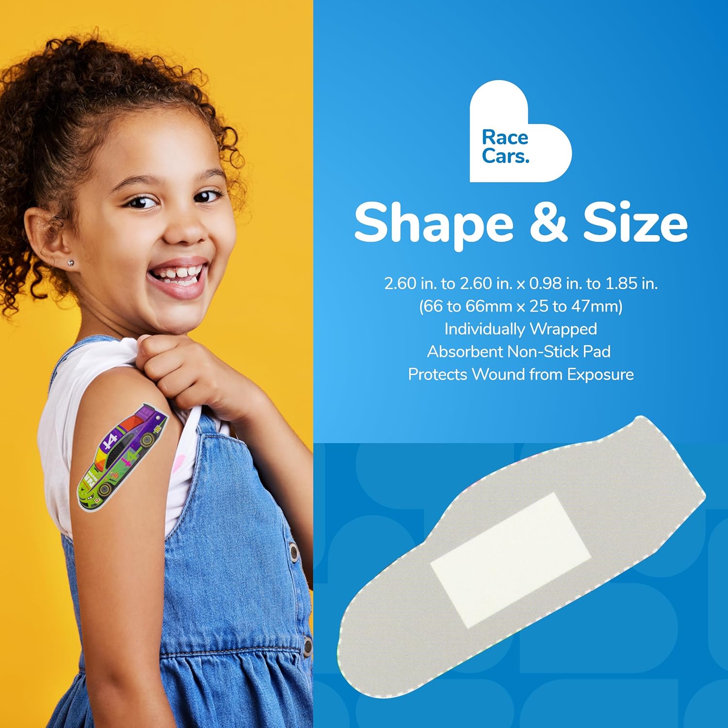 - SAFE PACKAGING: These sterile Race Cars bandages come in cute and adorable packaging, and are individually wrapped for safe handling; small bandages help protect kids' sensitive wounds from coming into contact with dirt for first aid wound care