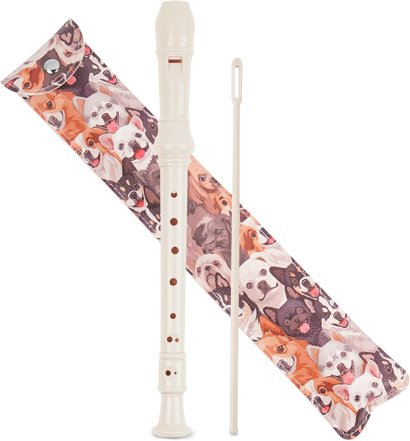 Recorder Instrument for Beginner Kids Adults,8-Hole Soprano Descant Recorder Music Flute with with Cleaning Rod & Leather Case For School Student Home Entertainment(2-Dense Dog)