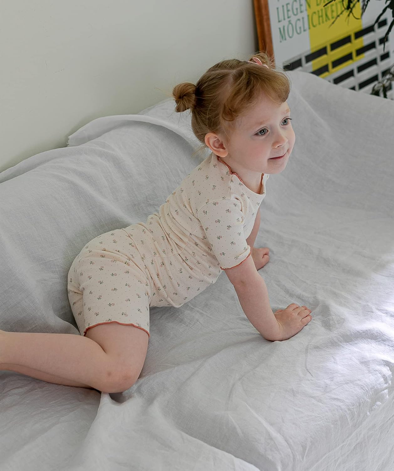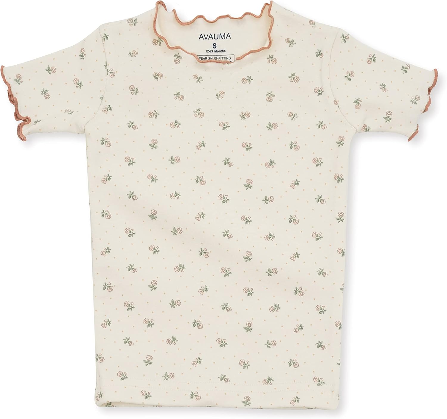 AVAUMA Baby Boy Girl Pajama Set 6M-7T Kids Cute Toddler Snug fit Flower Pattern Design Pjs Cotton Sleepwear Ruffled Shirring