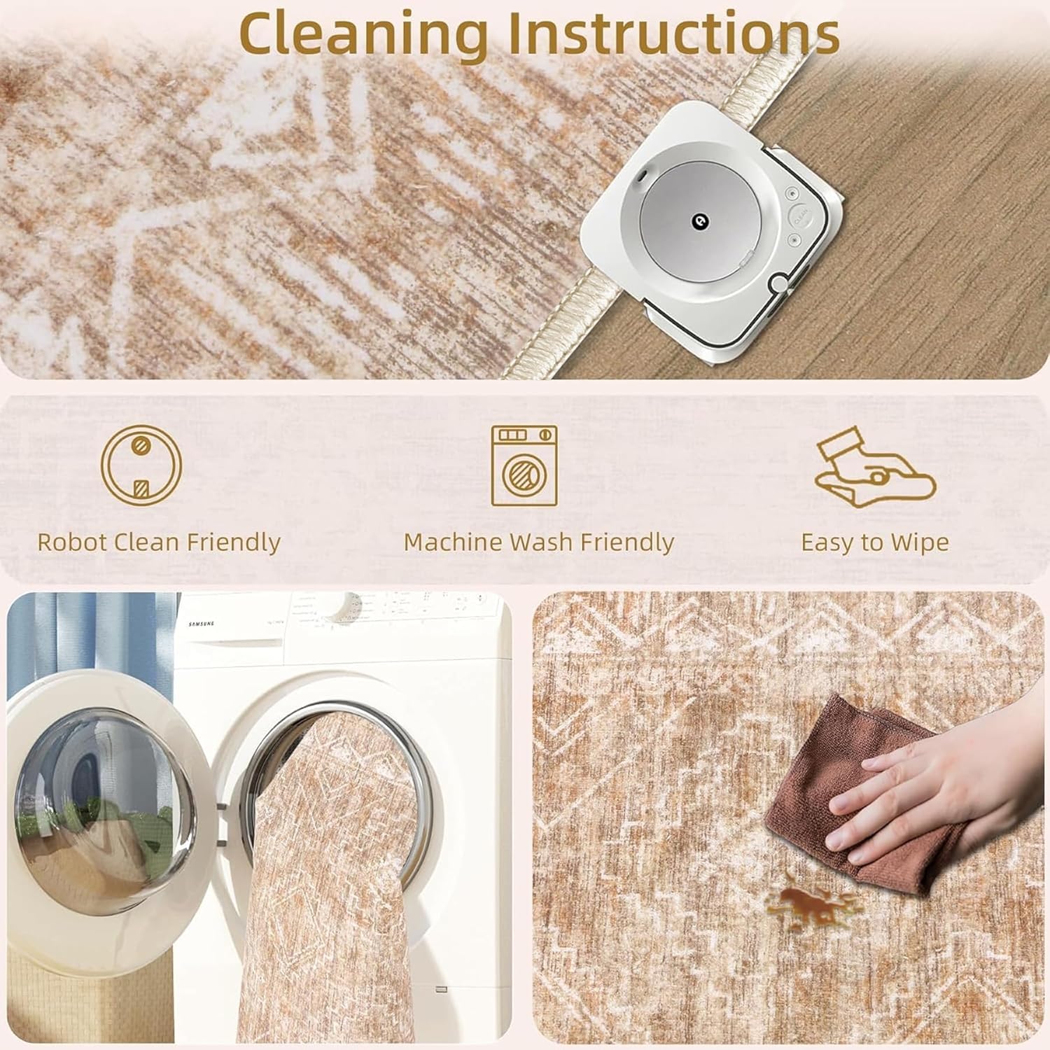 - Machine Washable Rug: Our washable rugs 9x12 have stain and splash-resistant properties. Use a broom or vacuum cleaner to Clean up or hair for daily care. The rug can be washed directly in the washing machine in cold water, making cleaning a breeze.(Please remember not to use bleach!)