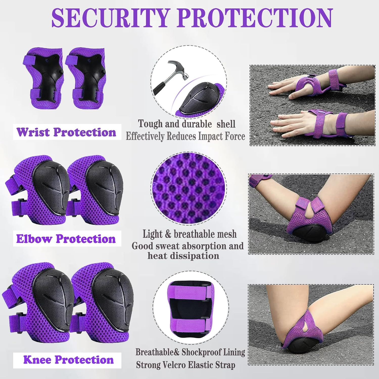 - 【Suitable for Multiple Sports】ours The kids helmet and knee elbow pads with wirst guards are designed for kids sports saftey protection especially for any outdoor activities for many outdoor sports such as skating, skateboard, scooters roller, skating balance bike helmet can provide professional protection to your children, our kids away from hurt when they enjoy the joy of sports.