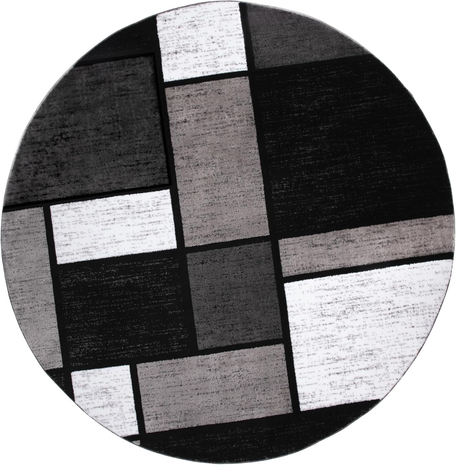 Rugshop Contemporary Modern Boxes for Home Office,Living Room,Bedroom,Kitchen Non Shedding Round Area Rug 8' Gray