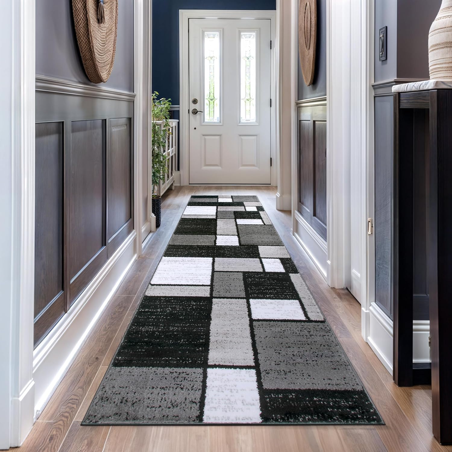 Rugshop Contemporary Modern Boxes for Home Office,Living Room,Bedroom,Kitchen Non Shedding Runner Rug 2'7" x 12' Gray