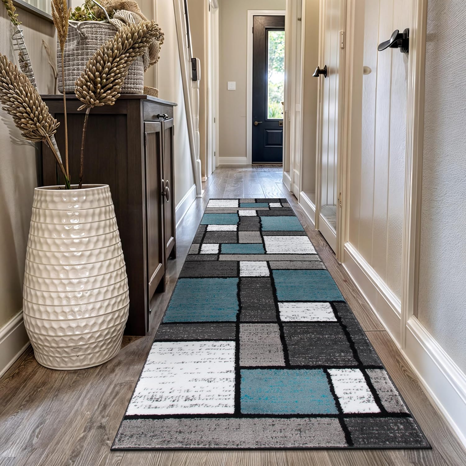 Rugshop Contemporary Modern Boxes for Home Office,Living Room,Bedroom,Kitchen Non Shedding Runner Rug 2'7" x 12' Blue