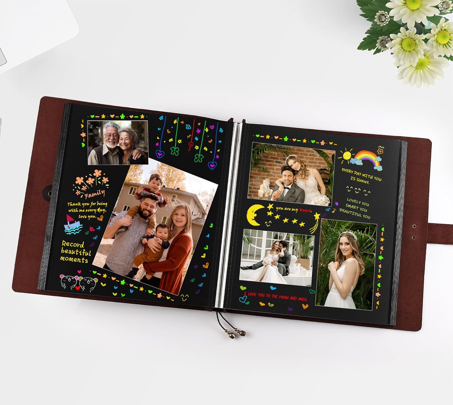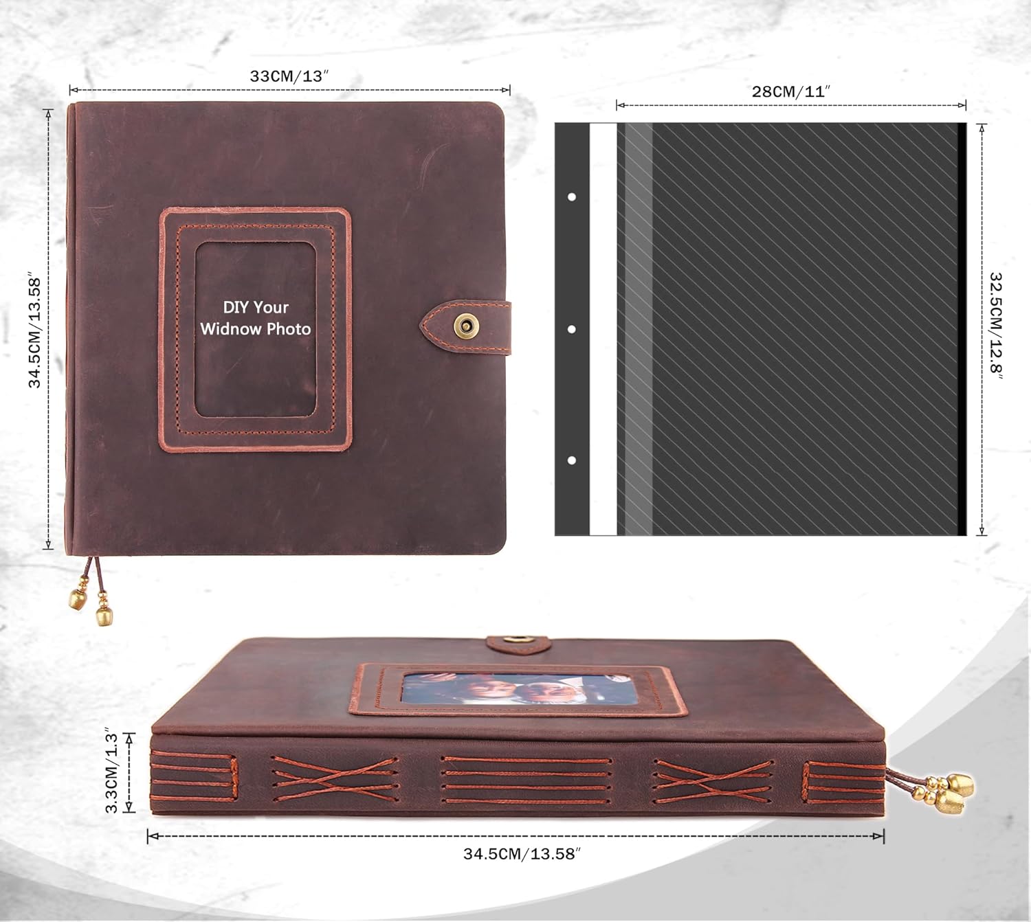 - Genuine cover: The page is wrapped in genuine leather, highlighting the retro and exquisite style. High quality film can protect photos text well and not fade. While protecting the photos from the oxidation of the air, the material of the album itself will not damage the photos, and your precious memories will be completely preserved for a long time