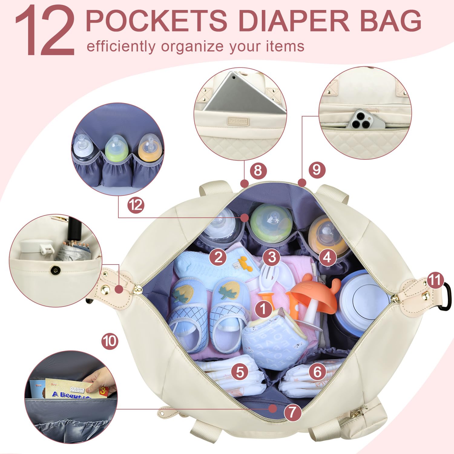 - All in One Diaper Baby Bag - Designed with multiple specialized pockets, pacifier case and easy-to-reach bottle compartments, Pritent diaper bag tote can also function as a hospital overnight maternity bag for labor and delivery, travel tote bag, stroller organization, crossbody / messenger bag, handbag.