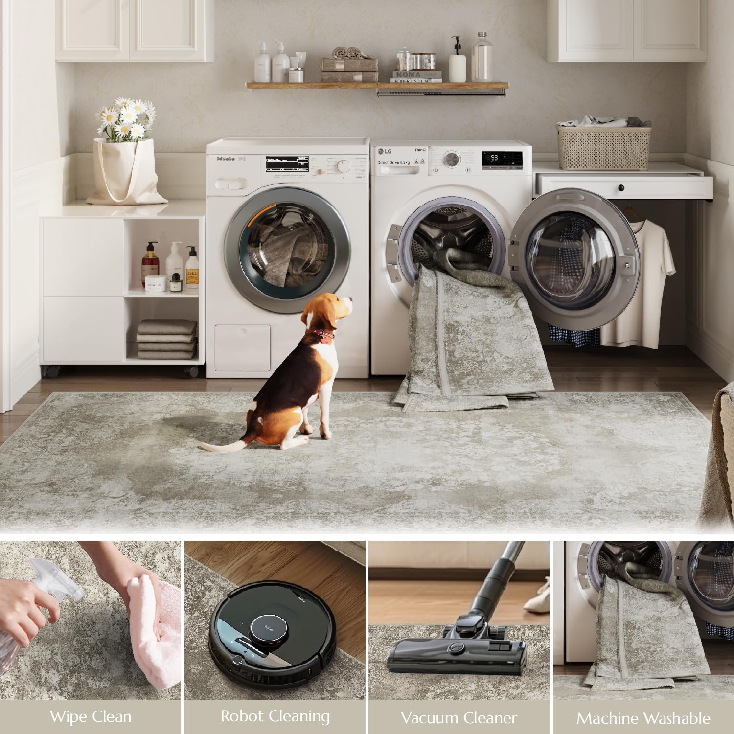 - Easy to Clean:With its stain resistant and easy to clean surface, Jinchan rug requires only minimal effort to keep it looking its best.Please try to Machine wash or vacuum regularly.Use a handheld small vacuum cleaner to remove the dust or hair for daily care. Machine wash with cold water on gentle cycle