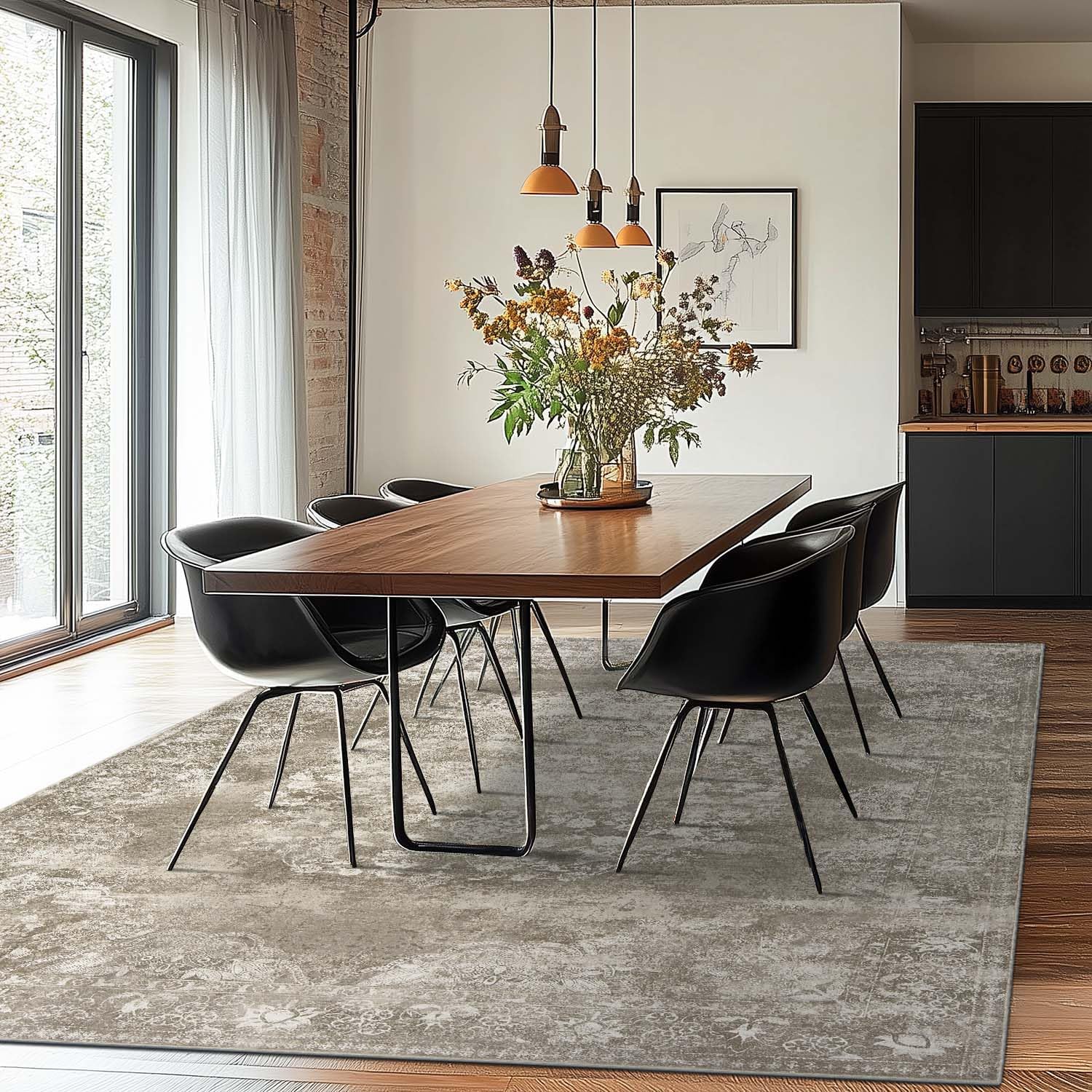 jinchan Washable Area Rug 6x9 for Living Room - Soft Faux Wool Ultra-Thin Stain Resistant Non-Slip Distressed Vintage Floral Large Carpet for Bedroom,Dining Room,Home Office,Nursery(Brown, 6'x9')
