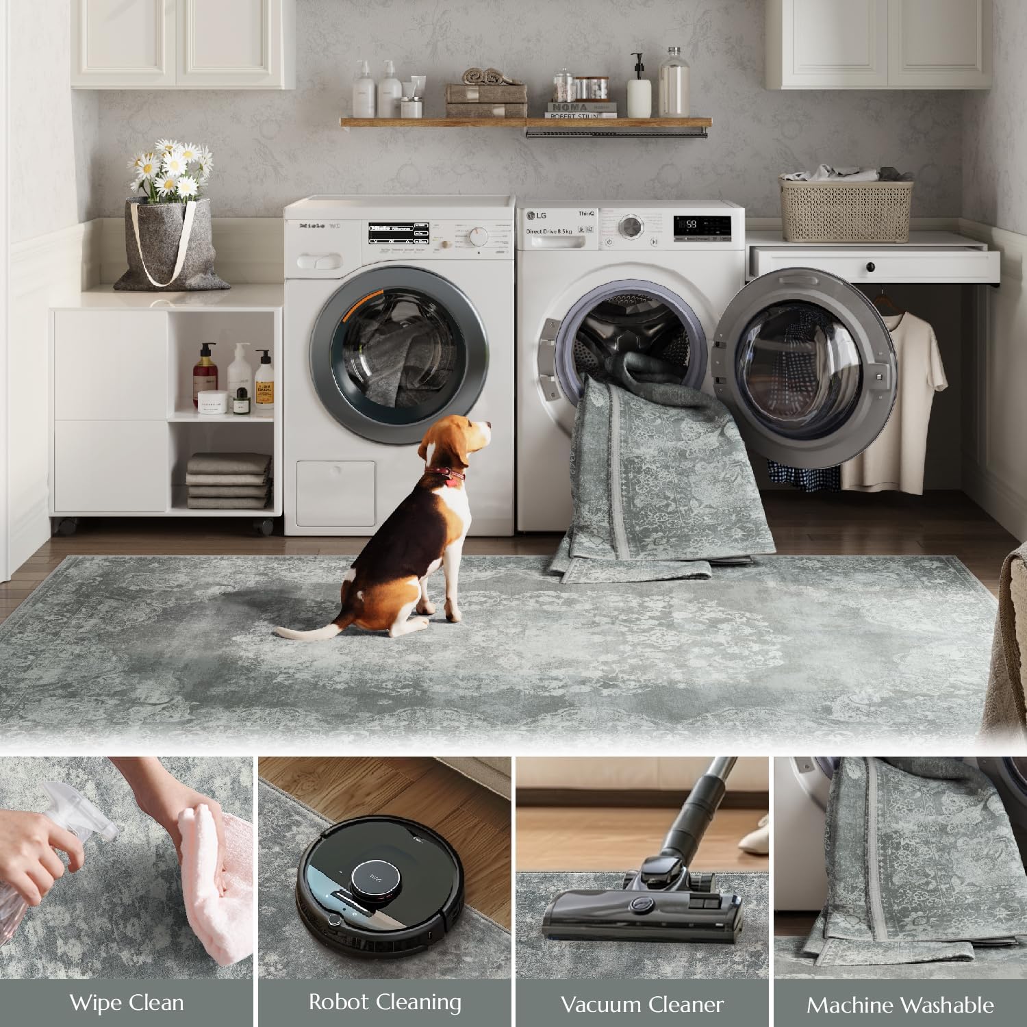 jinchan Vintage Floral 4x6 Area Rugs - Machine Washable Distressed Design Soft Ultra-Thin Low-Pile Non-Slip Carpet for Entryway Kitchen Bedroom Nursery Living Room Dining Room (4x6ft,Grey)