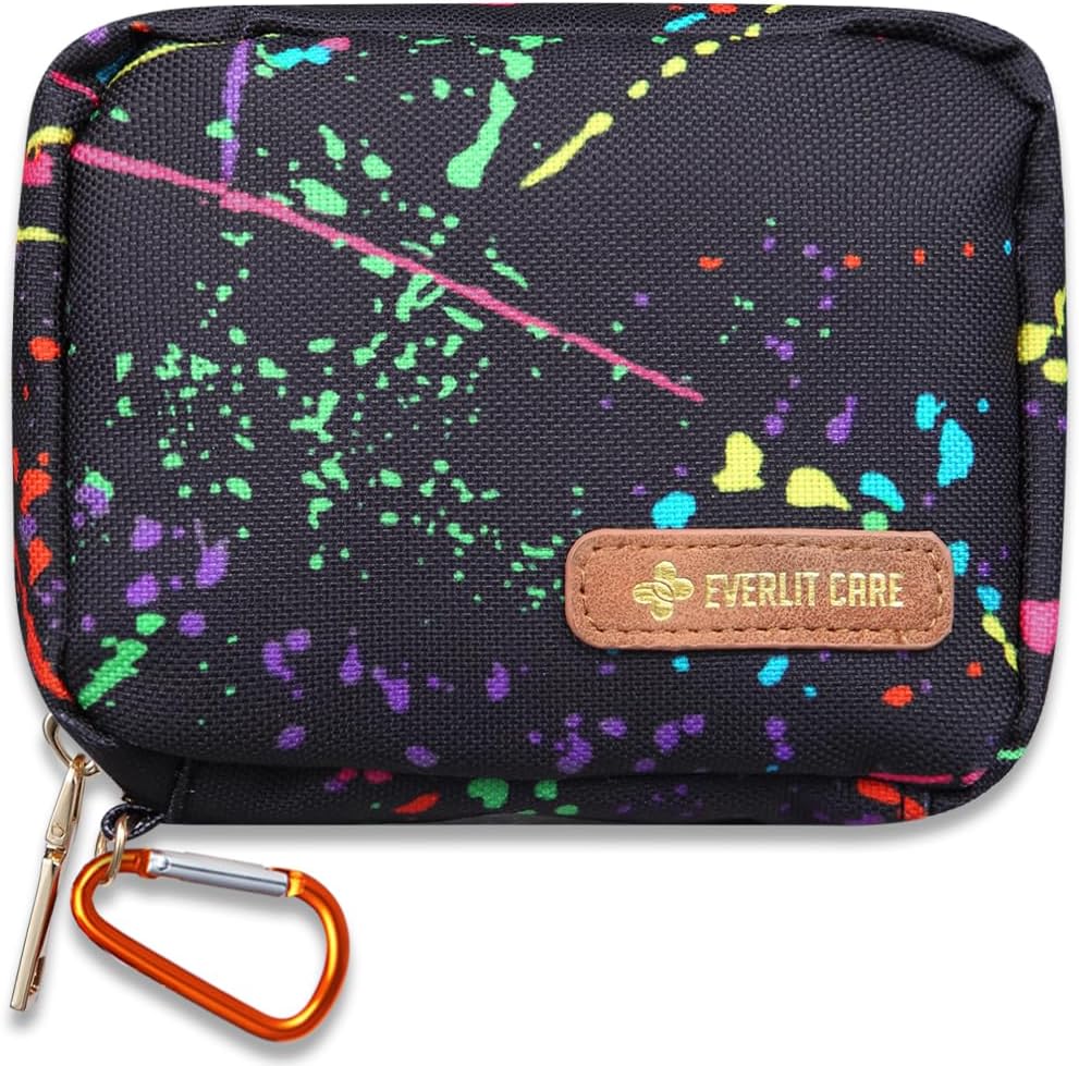 EVERLIT Mini Rescue Pack | 105 Medical Essentials Organized in Portable Storage Bag | Pocket Size Kids First Aid Kit with D Ring | Small Family-Friendly Travel Medical Kit (Splatter)