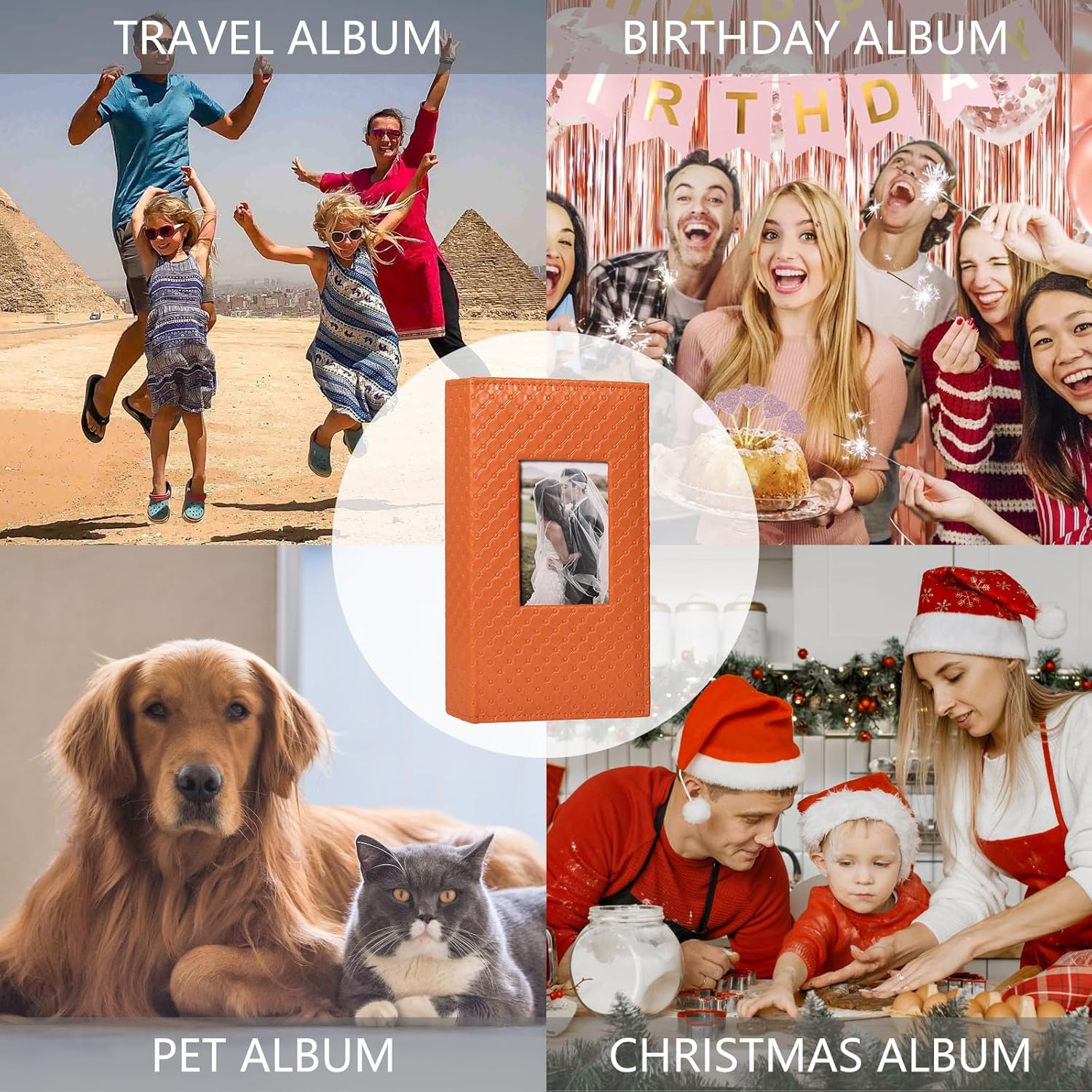 RECUTMS Photo Album for 4x6 300 Photos, 3 Per Pages Photo Picture Album PU Leather Button Grain Cover, Horizontal Photos Record Wedding Family Baby Anniversary Birthday Graduation Travel (Orange)