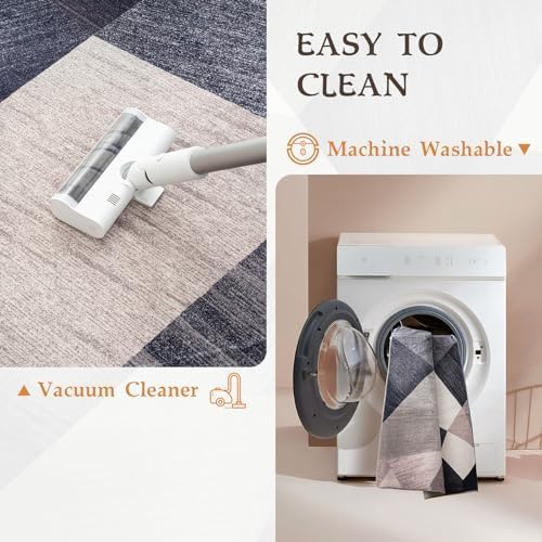 - 【Machine Washable Rugs】HOMFINE modern bedroom rug is machine washable, making it a more thorough and effortless way to remove stains and dust, which not only removes stains, dust, and odors more thoroughly but also saves you time and effort. Daily care is a breeze too, simply use a hoover. The HOMFINE washable area rug offers convenience and affordability for your busy lifestyle