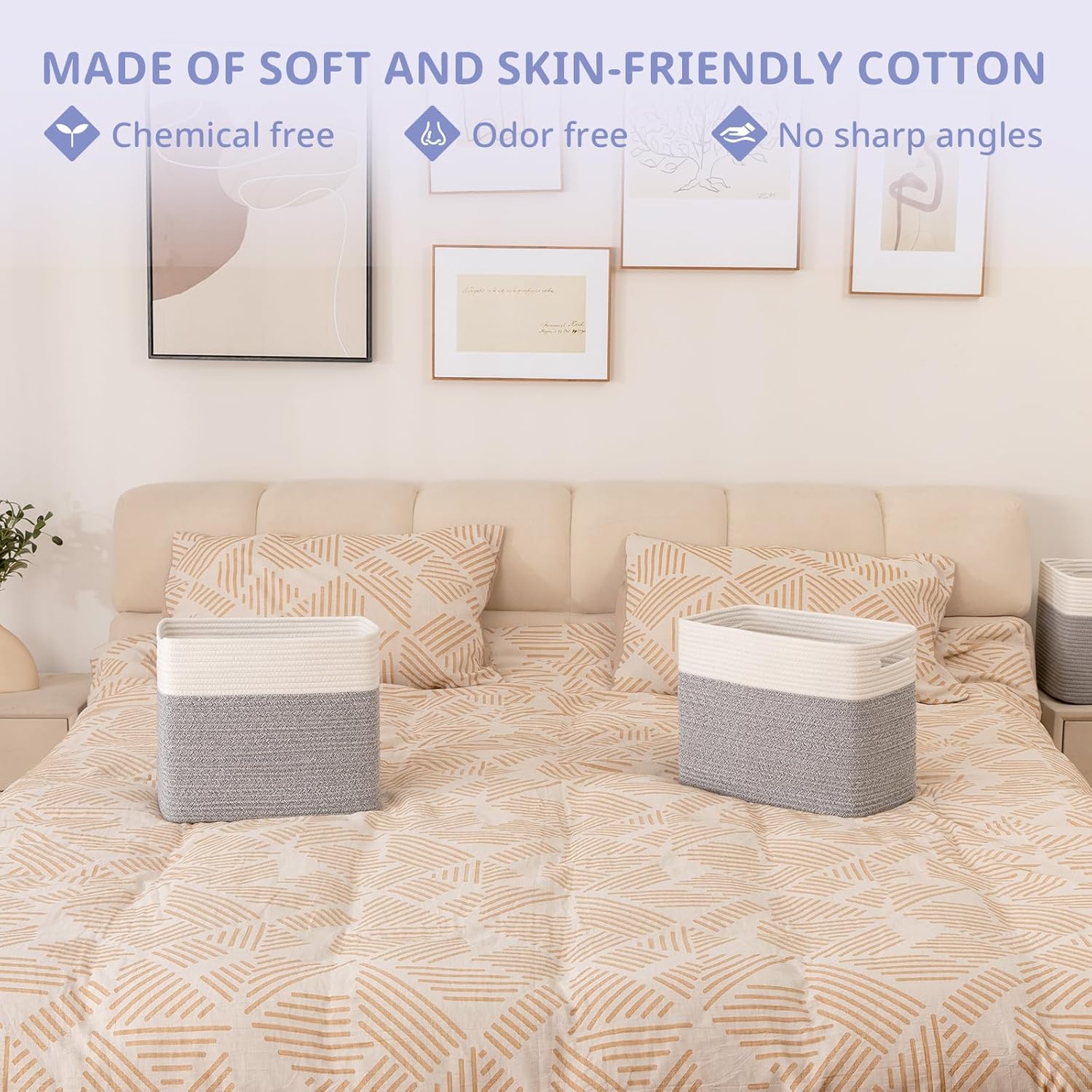 - 100% Cotton Rope Storage Baskets:OIAHOMY storage bins are made of high-quality natural cotton, chemical free and safe for kids and pets. It will not scratch your furniture and floor and more firm than plastic basket