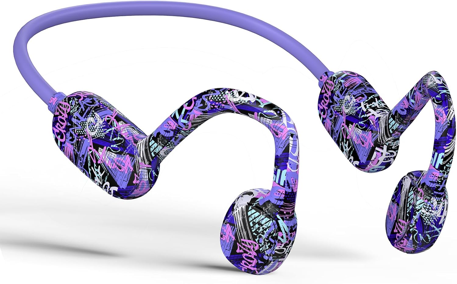 - [360° Bendable Without Deformation and IPX5 Waterproof]: Our open-ear earbuds are made with a high-strength memory titanium neckband and food-grade pads, which are skin-friendly and can support 360° bending without any deformation during daily use. Certified as IP55 waterproof, our open-ear Bluetooth headphones are resistant to sweat, dust, and moisture. They are excellent headphones for your kids' outdoor and indoor sports and normal use