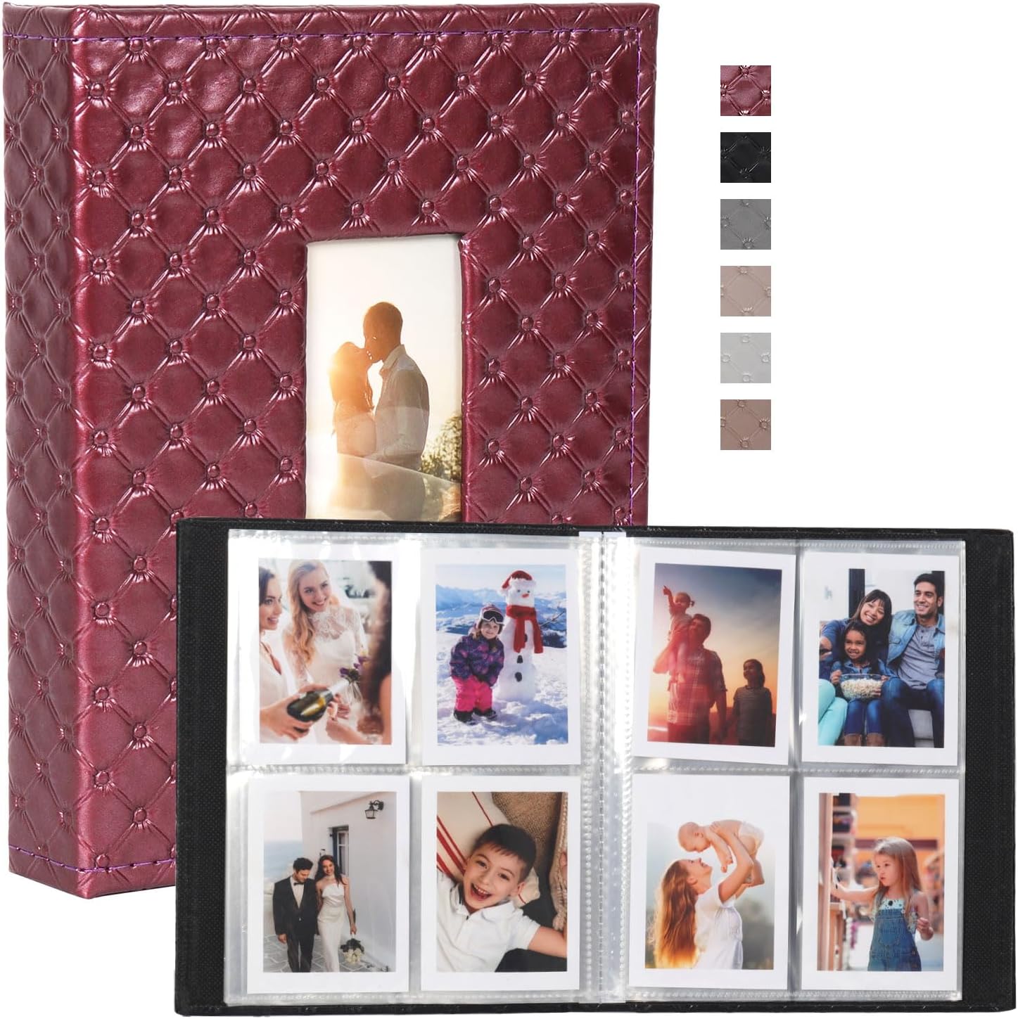 RECUTMS Photo Album 208 Photos for Fujifilm Instax Mini Camera, 2x3 Inch Photo Album, Leather Cover with Window, for Instax Mini 12 11 9 40 90 8 7 Evo LiPlay Instant Camera (Wine Red)