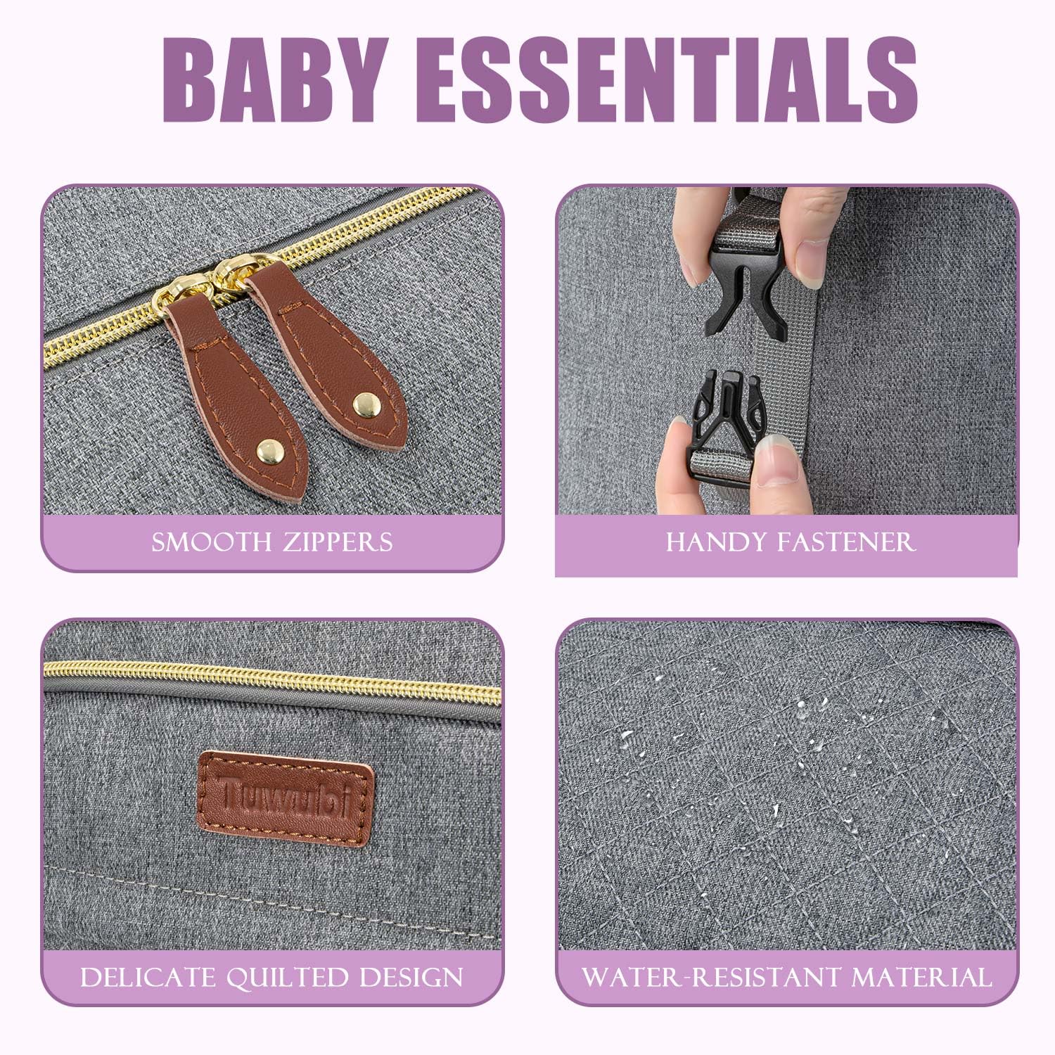 - Spacious and Organized Storage: Tuwubi large diaper bag tote features a roomy main compartment with two-way zippers, offering ample space for essentials such as formula, diapers, and clothing. It includes three dedicated bottle pockets and a waterproof internal compartment for clean clothes, In addition, there are multiple compartments for independent storage,ensuring everything you need is neatly organized and easily accessible.
