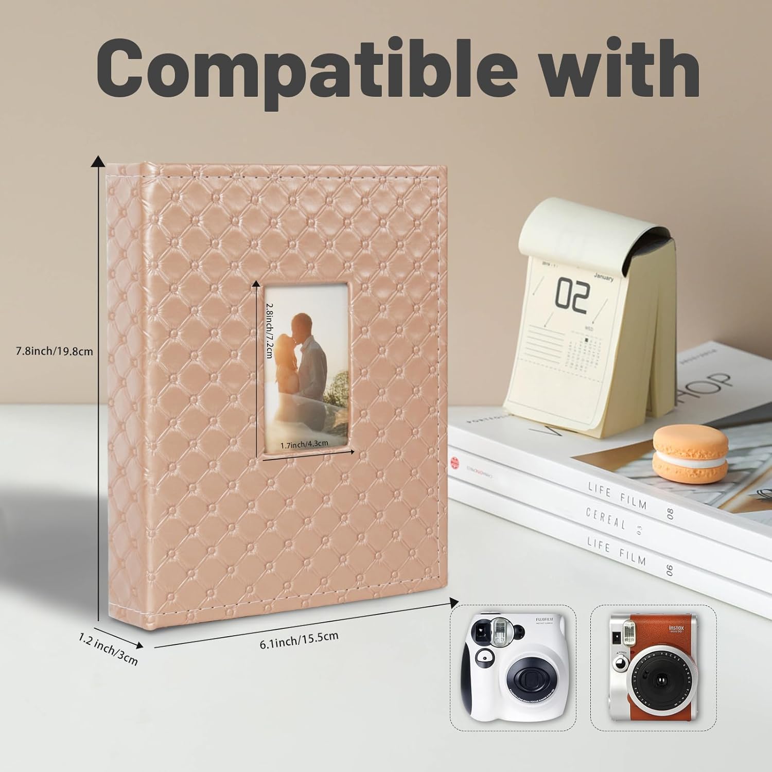 - 208 Photos Large Capacity: This polaroid photo album measures 7.8 x 6.1 x 1.2 inch, has an front window 2.8 x 1.7 inch. Our photo album holds a total of 208 photos, contains 52 individual pages with 4 photos per page