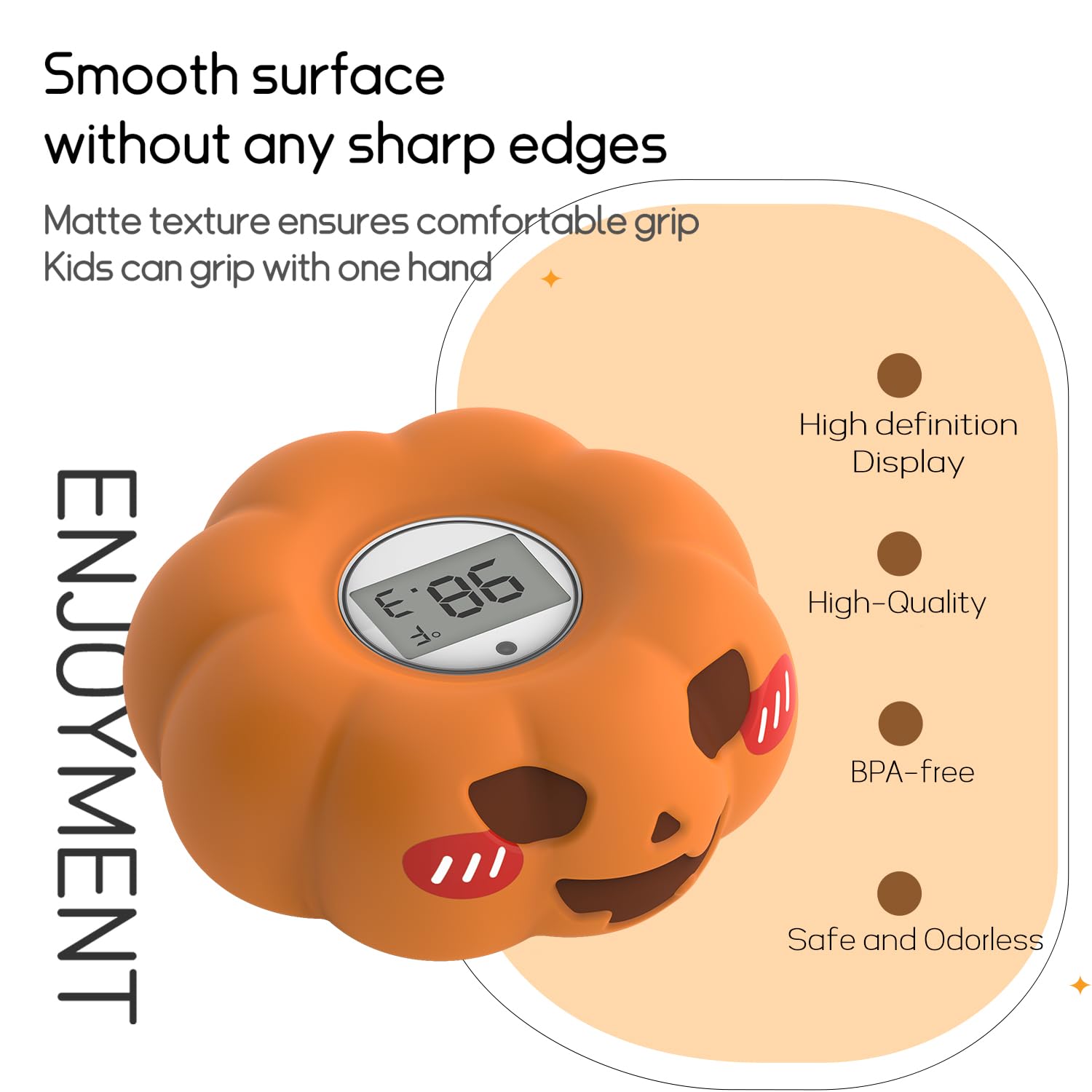 - Engaging Bath Toy - Made of safe materials with smooth edges, ensuring durability and reliability. Pumpkim shape adds joy to the bath, making bath time a fun and interactive learning experience. Not only does it provide accurate temperature readings, but it also serves as a bath toy for your baby to play with in the tub.