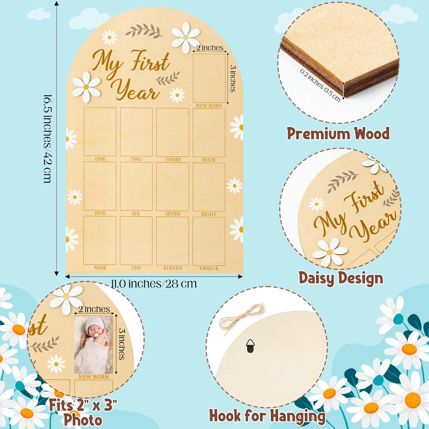 - Daisy Photo Frame: Our baby picture frame come with hook and point stickers for you to hang and decoration. It is made of quality and thick wooden material for long-term use. The 3d daisy board with your baby's photo pasted on it will surely be the most beautiful sight at your baby's first year party.