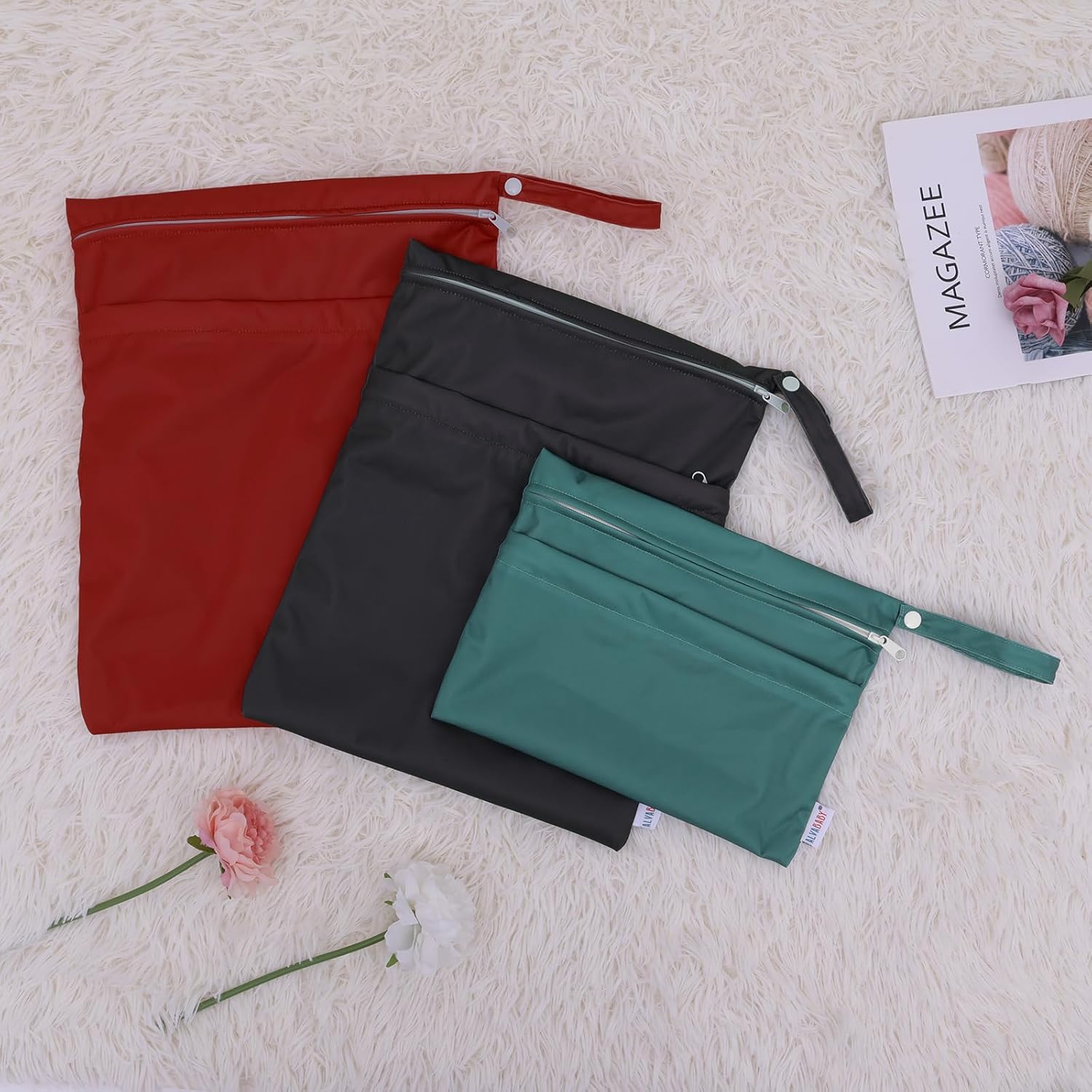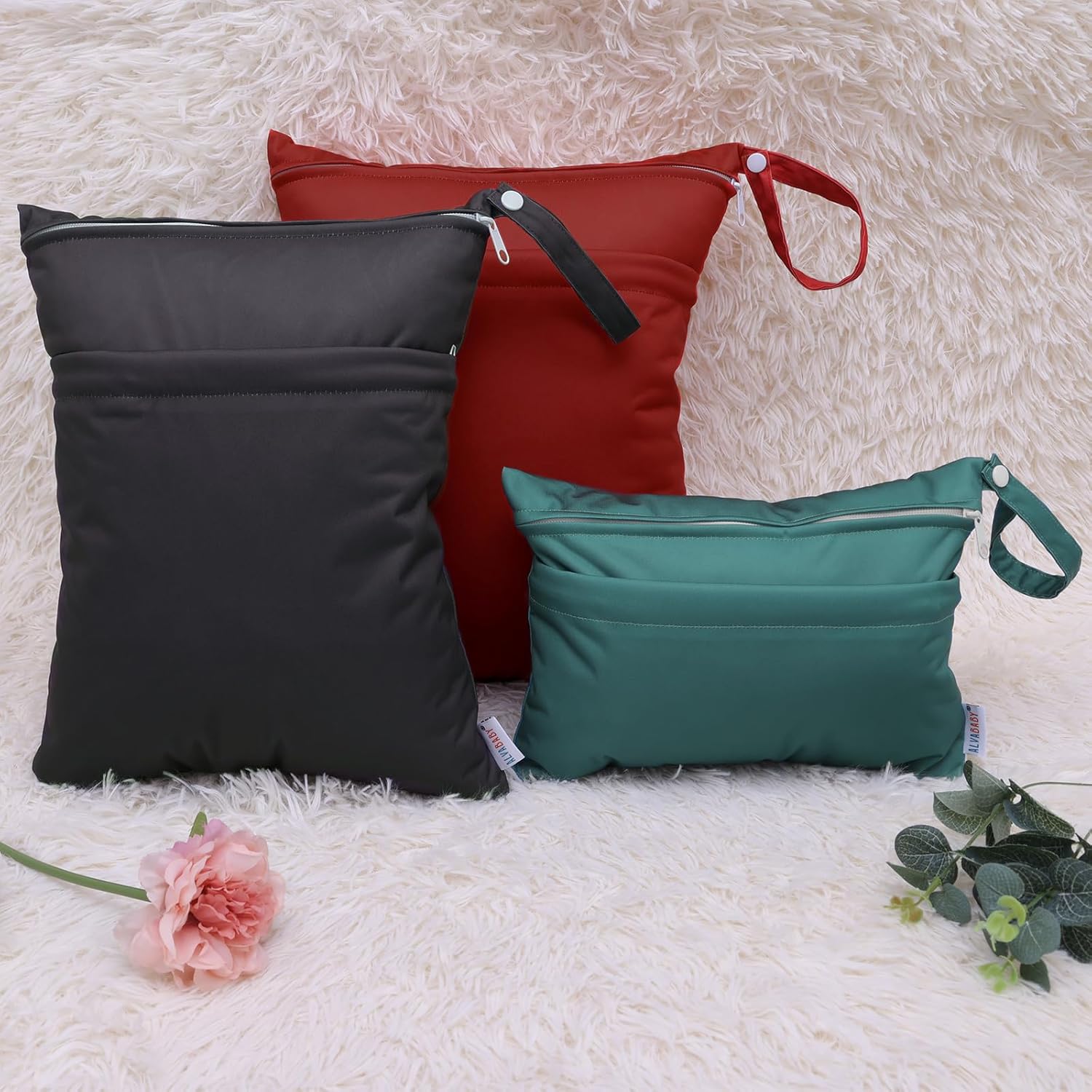 - Fashion , Reusable&Waterproof , High quality -A trim and attractive design. ALVABABY wet/dry bag are made from waterproof 100% polyester, put dirty cloth diapers in a wet bag. Comes with handle for easy carrying or attaching to your diaper bag or stroller.