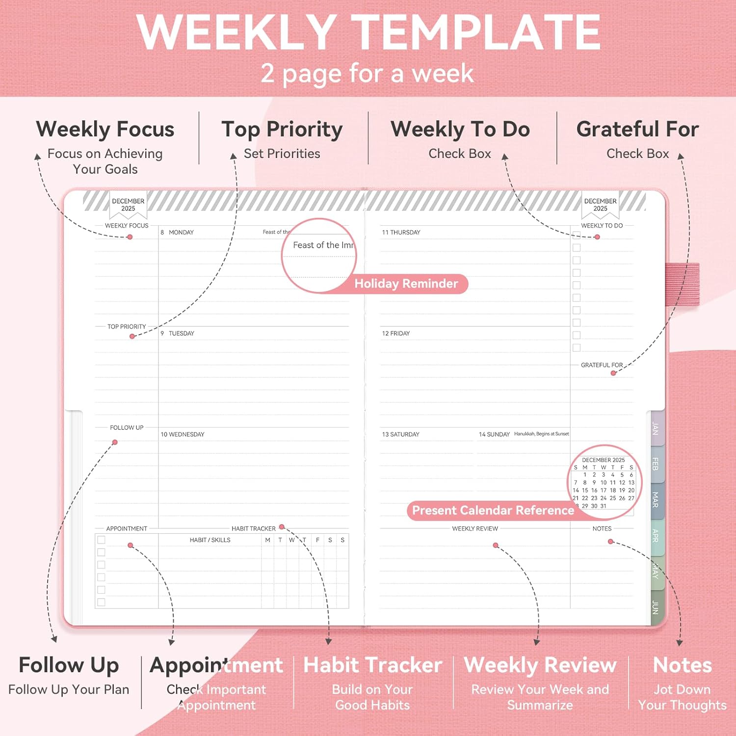 - Comprehensive Year-Round Planning: Stay organized from July 2025 to June 2026 with clear monthly and weekly pages. Includes sections for personal information, yearly overview, goal setting, important dates, holidays, contacts, and notes for efficient time management.