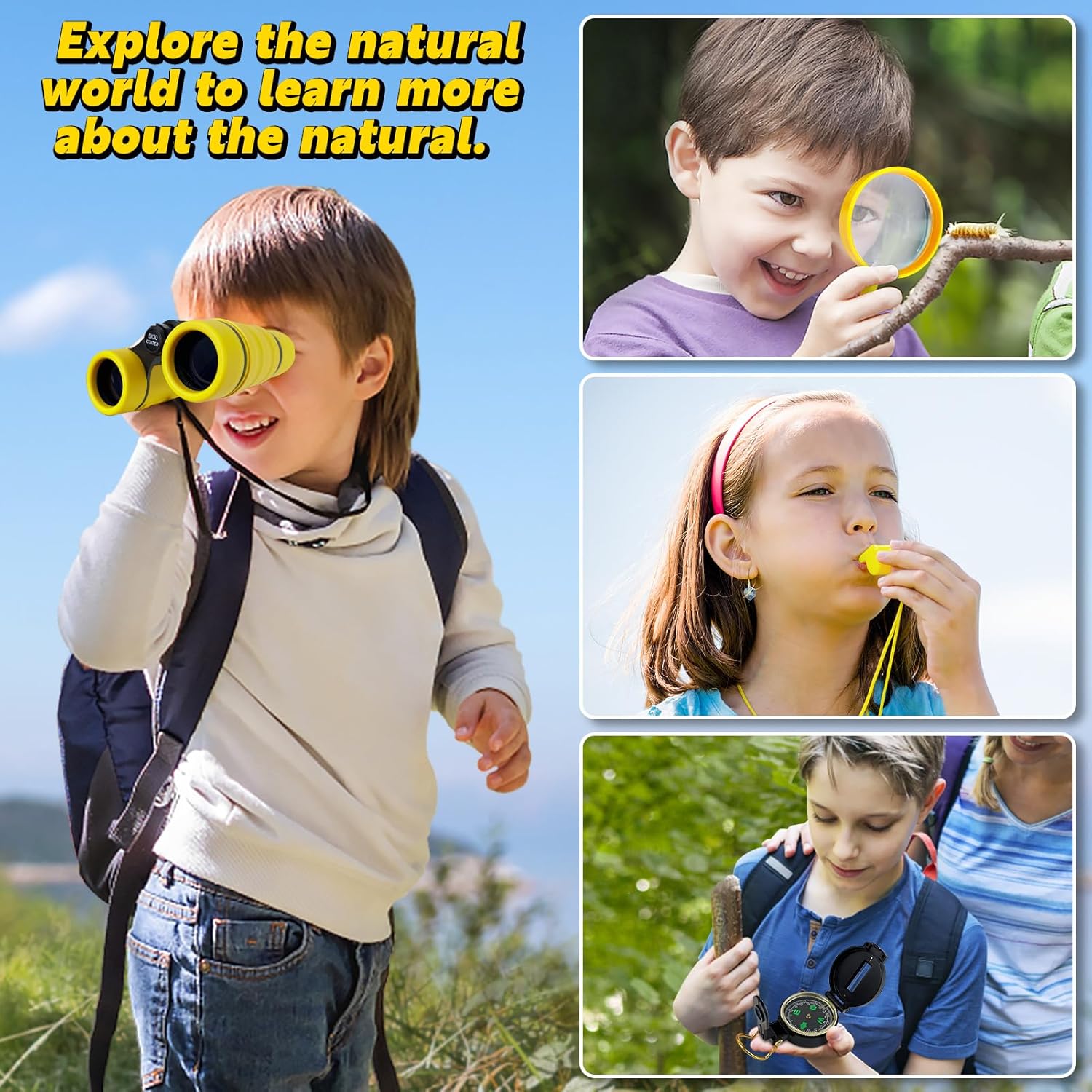 - Complete kids explorer kit includes: Binoculars, magnifying glass, hand crank flashlight, whistle, backpack, the compass that supports STEM learning and encourages scientific exploration and a love of nature.
