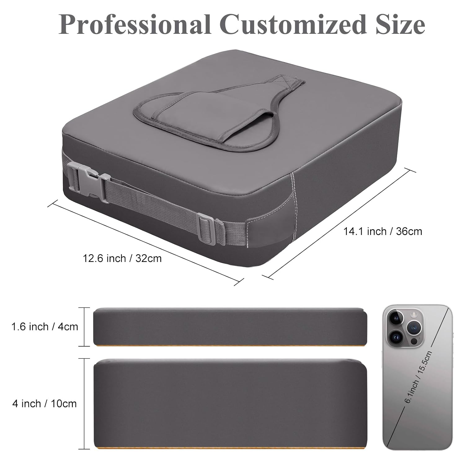 - 【Booster Seat Suitable Size】The baby booster seat has a backrest size of 14.1x12.6 x 1.6 inches and a cushion size of 14.1 x 12.6 x 4 inches, specifically designed for most dining seats. At the same time, the length of the bottom seat belt is appropriately increase, so the cushion can be better fixed on the most dining chair.