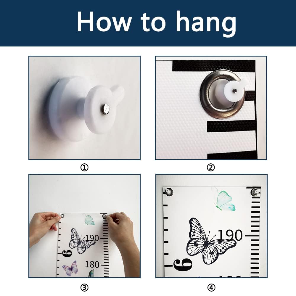 - HIGH QUALITY & EASY TO USE - Growth chart is made from premium waterproof canvas material allowing for easy marking. We also provide you with four traceless nails wall hanging accessories for easy installation. There are detailed installation pictures in the pictures we uploaded. Please refer to it to install this adorable height ruler.
