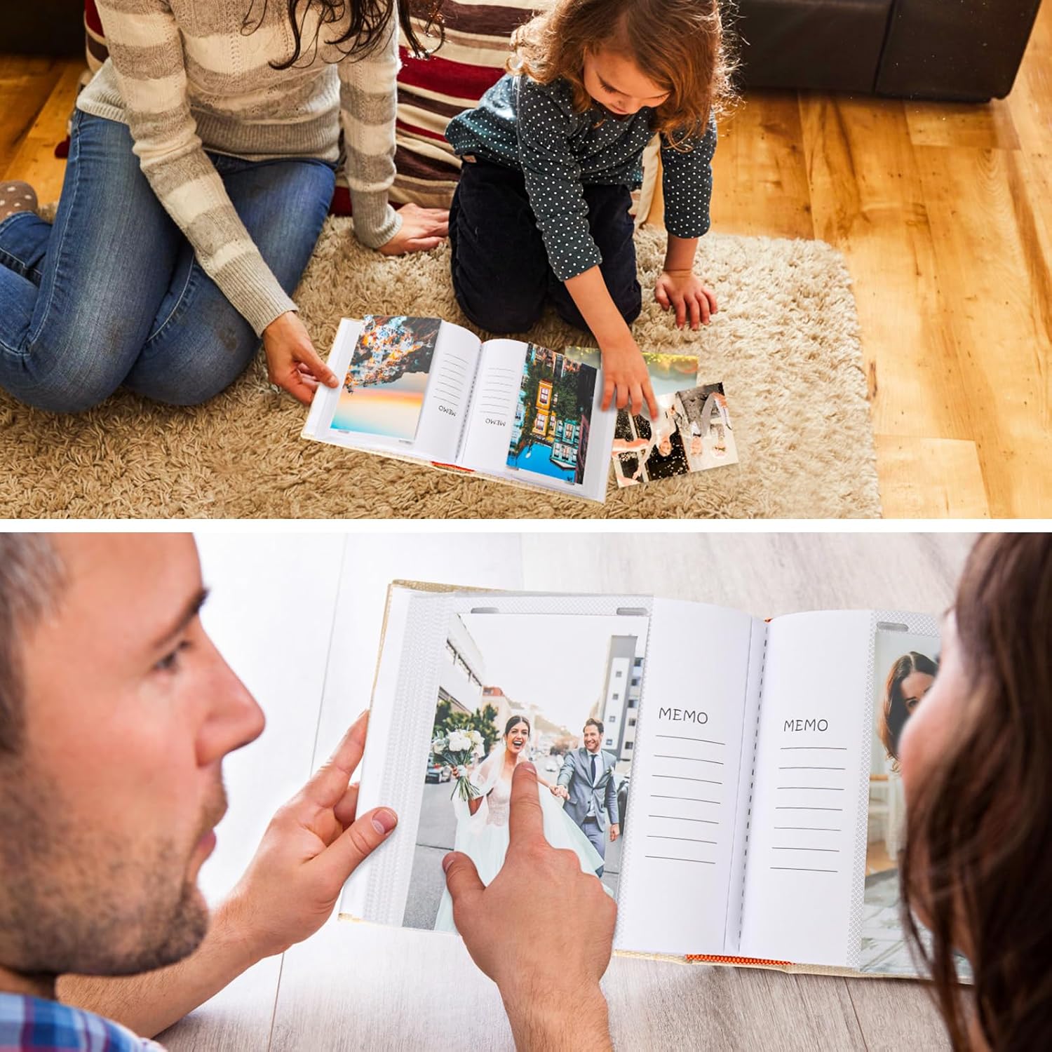 - Practical Memo Design: Albums with a glued binding include a dedicated memo writing area. The white blank memo space has horizontal lines next to each pocket, which you can write journal names, dates, places and special memories as you likes