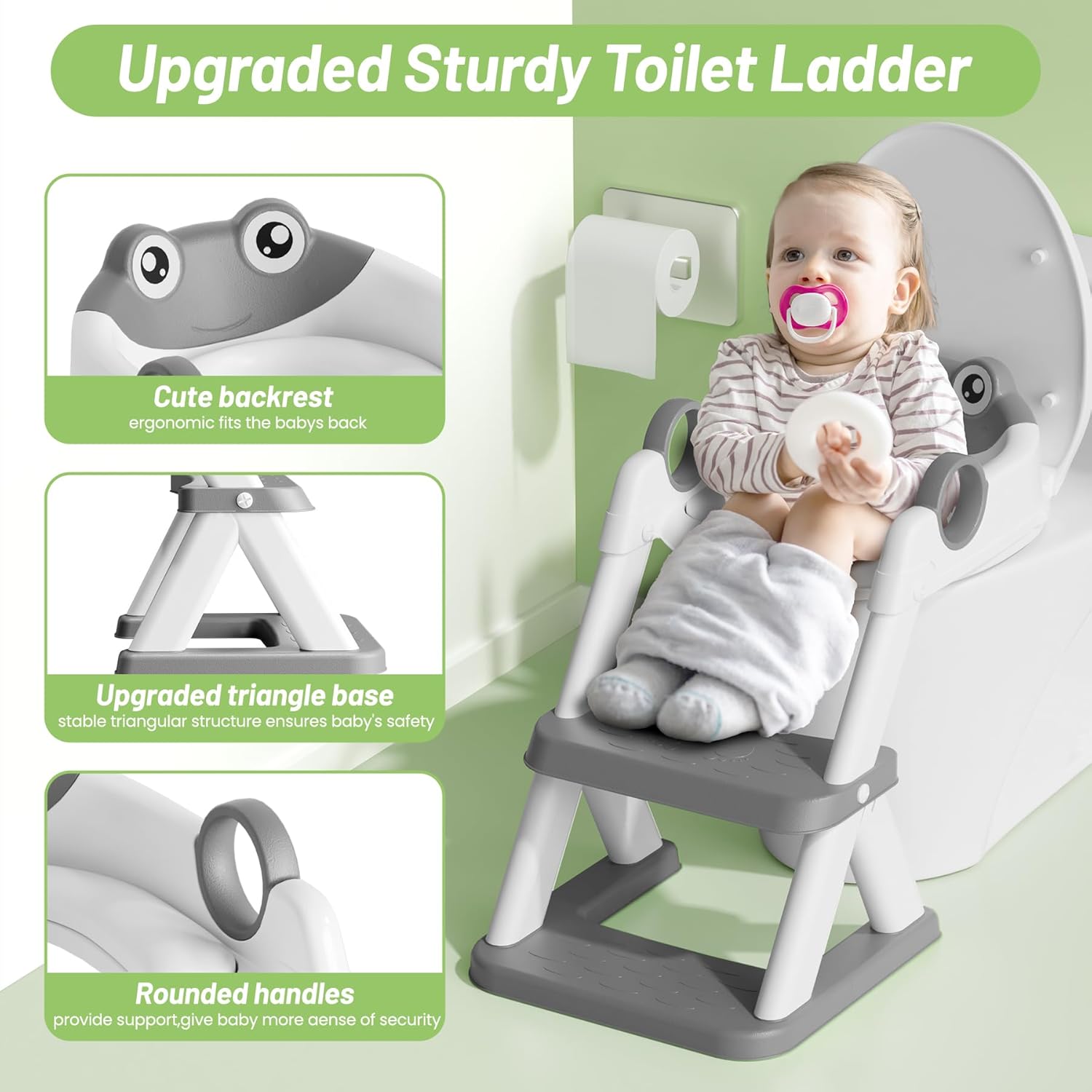 - Upgraded Version : We've improved our toilet step stool by creating a sturdy triangular structure that's designed to support children as they climb. Plus, we've widened the stepping surface to 15.7"x5.2", providing more space for children to turn around and eliminating any fear they may have of climbing.