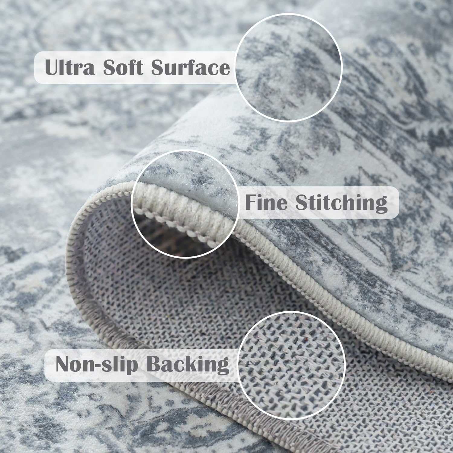 jinchan Hallway Runner Rug 3x8 Washable Runner - Vintage Floral Non Slip Low-Pile Soft Thin Faux Wool Kitchen Rug Distressed Carpet for Farmhouse Bedroom Laundry Room(3x8ft,Grey)