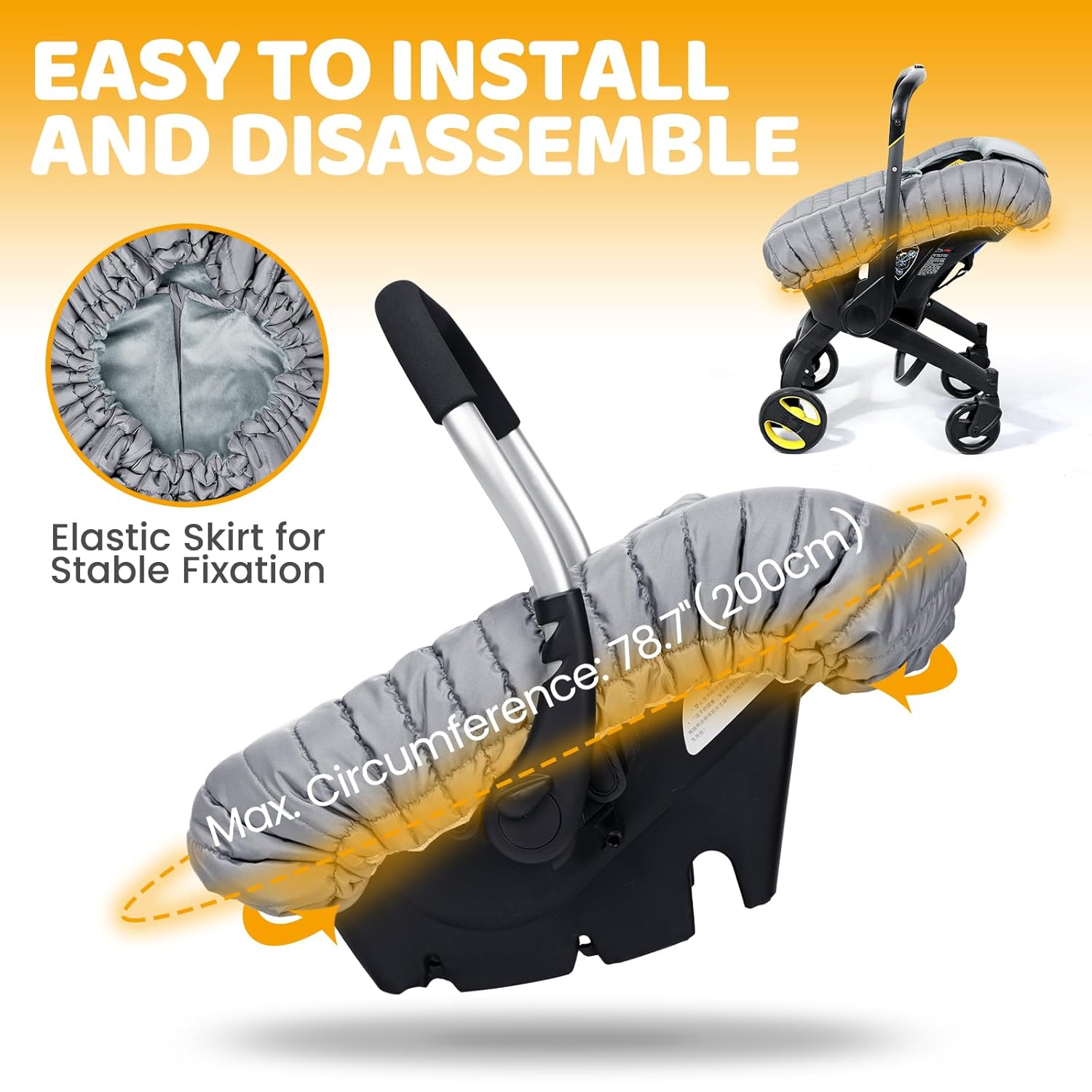 - UNIQUE DESIGN & UNIVERSAL FIT: The "Shower Cap" design style in the back allow parents to put the elastic bag on or fix it around the car seats, standard stroller etc, which means it can fit on every infant car seat, standard stroller etc